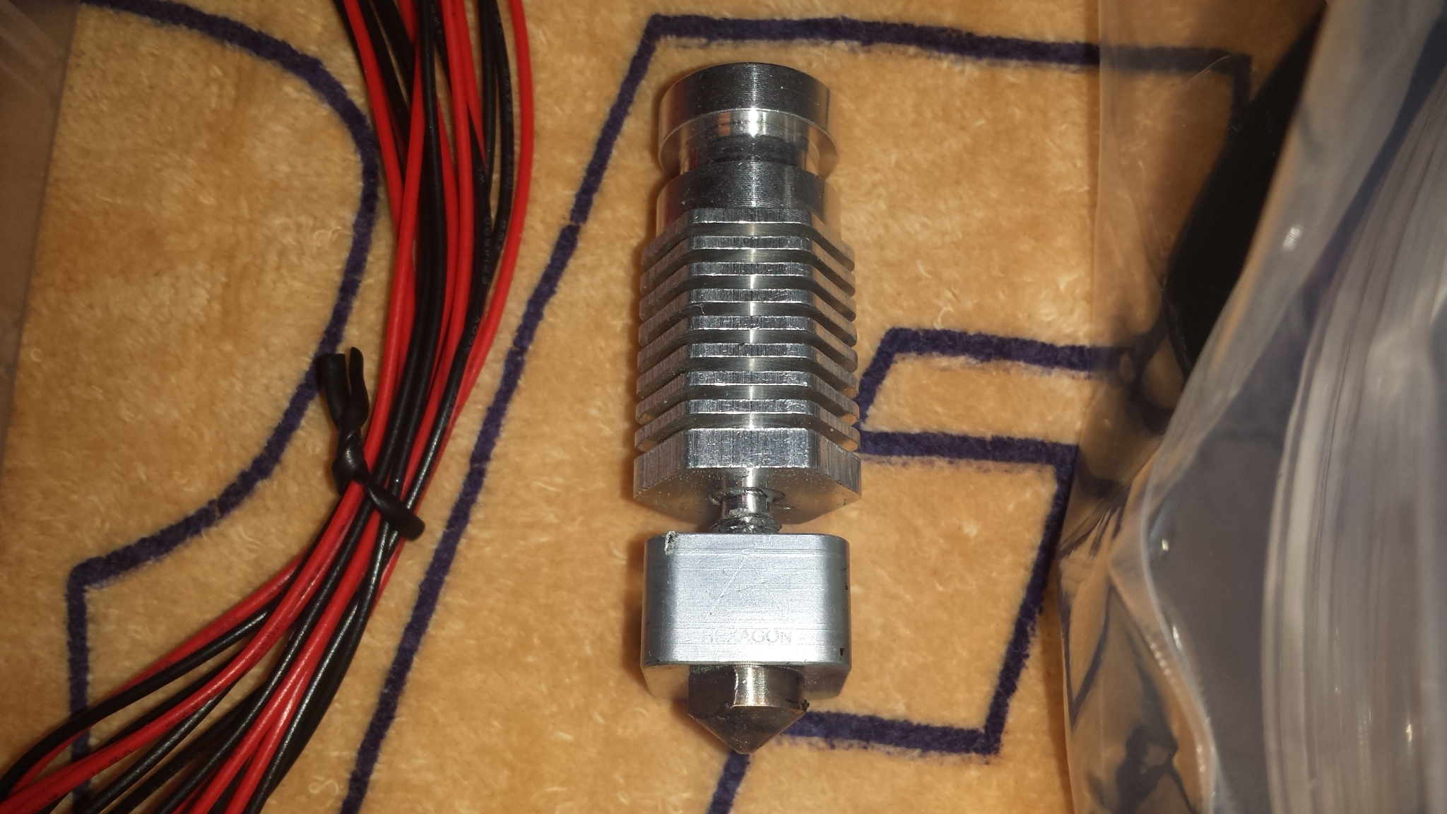 Up for sale is my spare Hexagon Hotend that uses 3.0mm filament. Includes everything pictured. The hotend has seen very little use. You will need a new thermistor and wiring for the heating coil(had to use on my current printer). Also included is a brand new roll of 3.0mm Push Plastic ABS White. Both together new is 100 before shipping. Looking to get 70 shipped for everything. Any questions feel free to ask.