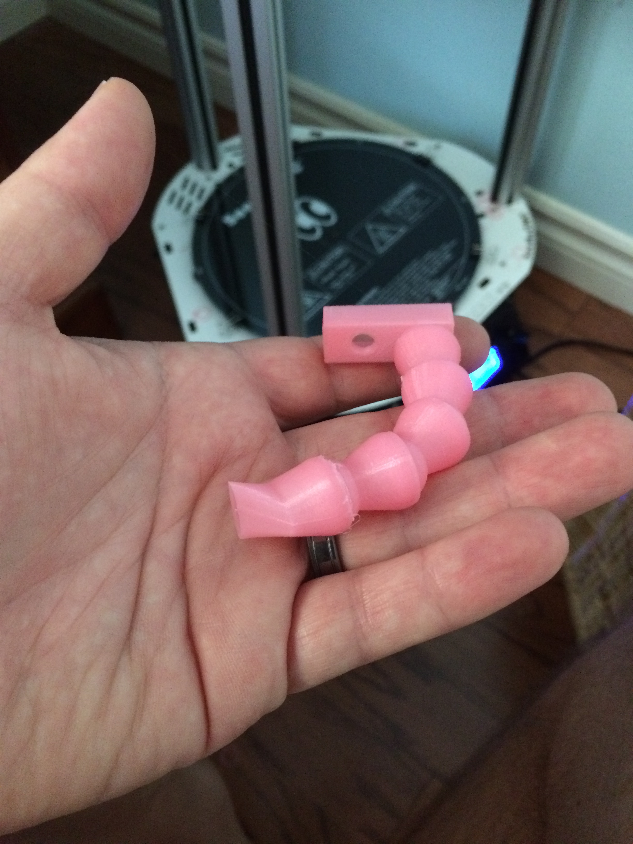 that's pretty cool. What type of material filament did you use? The first thing that came to mind when I saw your pix was the flexible tubing for CNCs. So I have to ask, why not just use this for less than $10 or even cheaper for shorter length. http://www.ebay.com/itm/like/1716117157 ... =82&chn=ps You could probably just find a shroud or make up one real quick. :D Either way, looks cool.