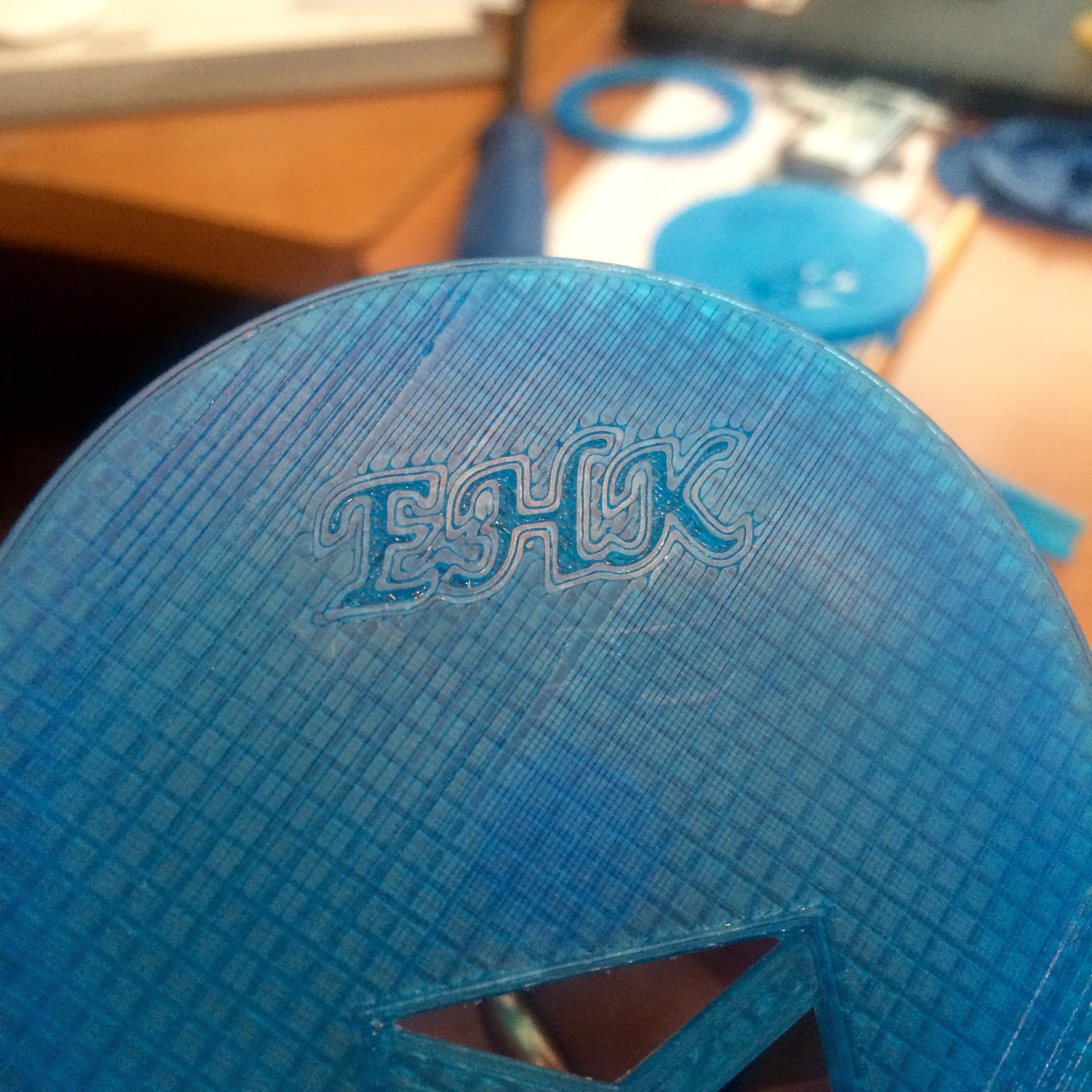 This is where first layer height and dead-on slicing parameters is critical. This first layer is just ever so slightly undefiled as can be seen by divots at the tops of the letters. A little tweak here with a special first layer factory should close those. This is quite a good embossing that rivals what I can do in KISS>