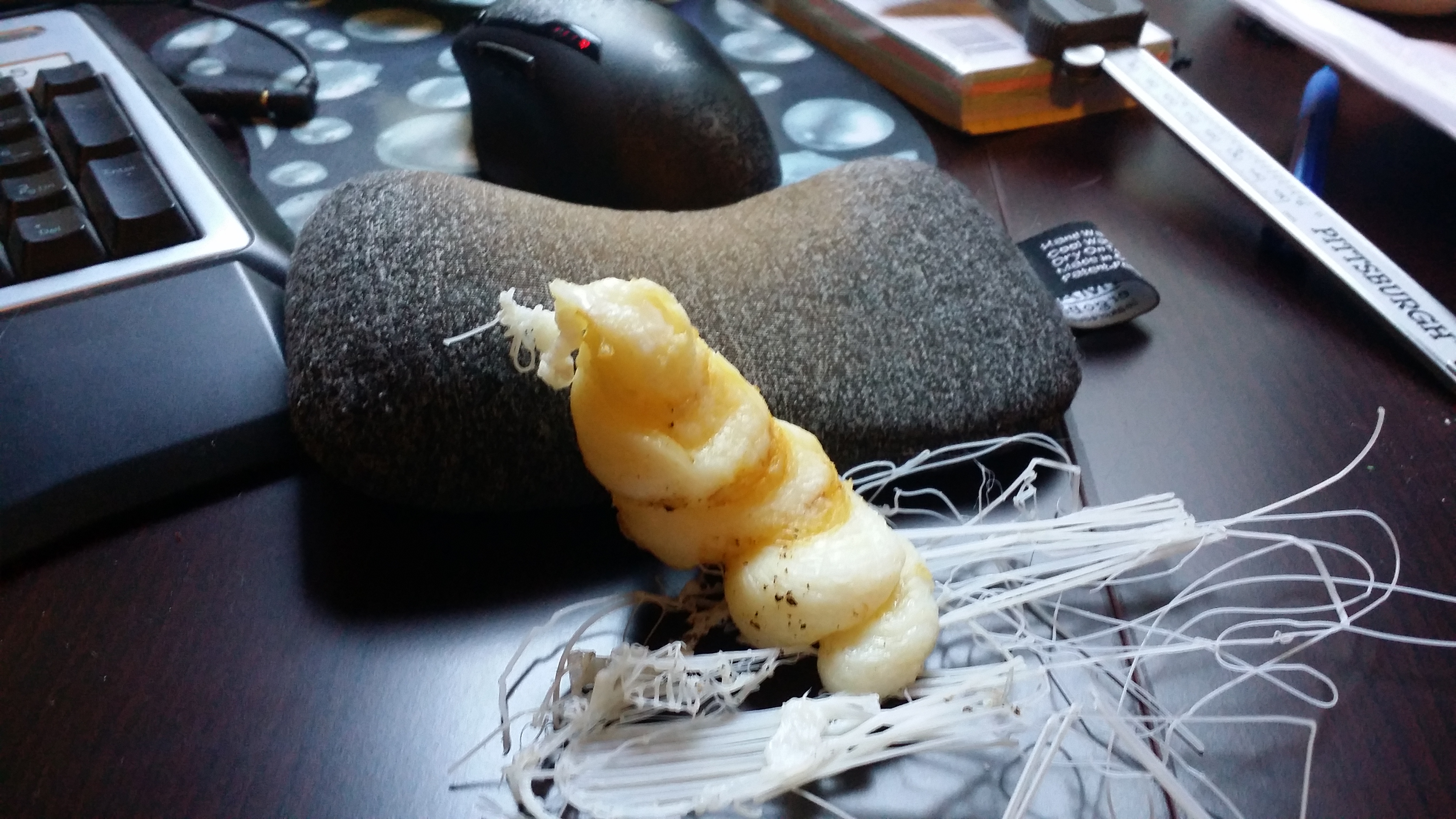 I came home to a failed print today. Most time when I have failed prints its just a bunch of spaghetti but this time there was a funky smell and I came home to this large "turd". I wasn't home to see what causes it. If someone knows please point me in the right direction to fix it.