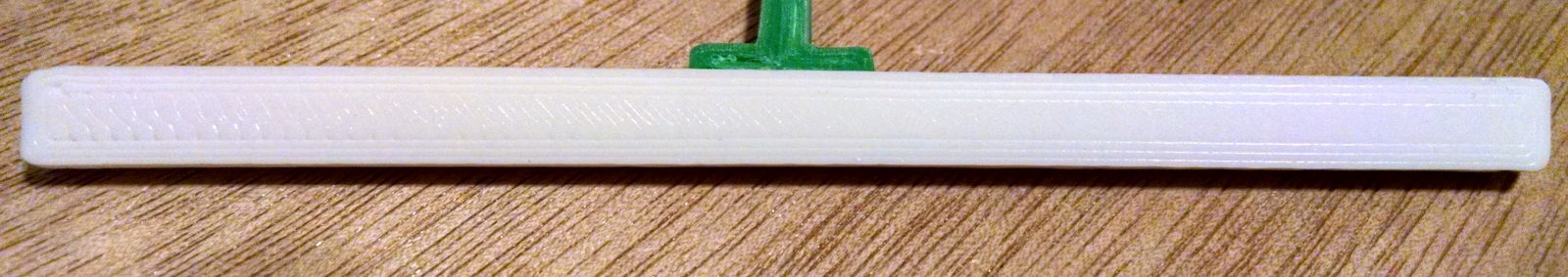I have been using a 100mm X 6mm X 3mm calibration object made in OpenSCAD. Printed at .2mm layer height, with the first layer at .3mm. Using Slic3r. Using RepetierHost 1.0.6 and current firmware from SeeMeCNC's website.