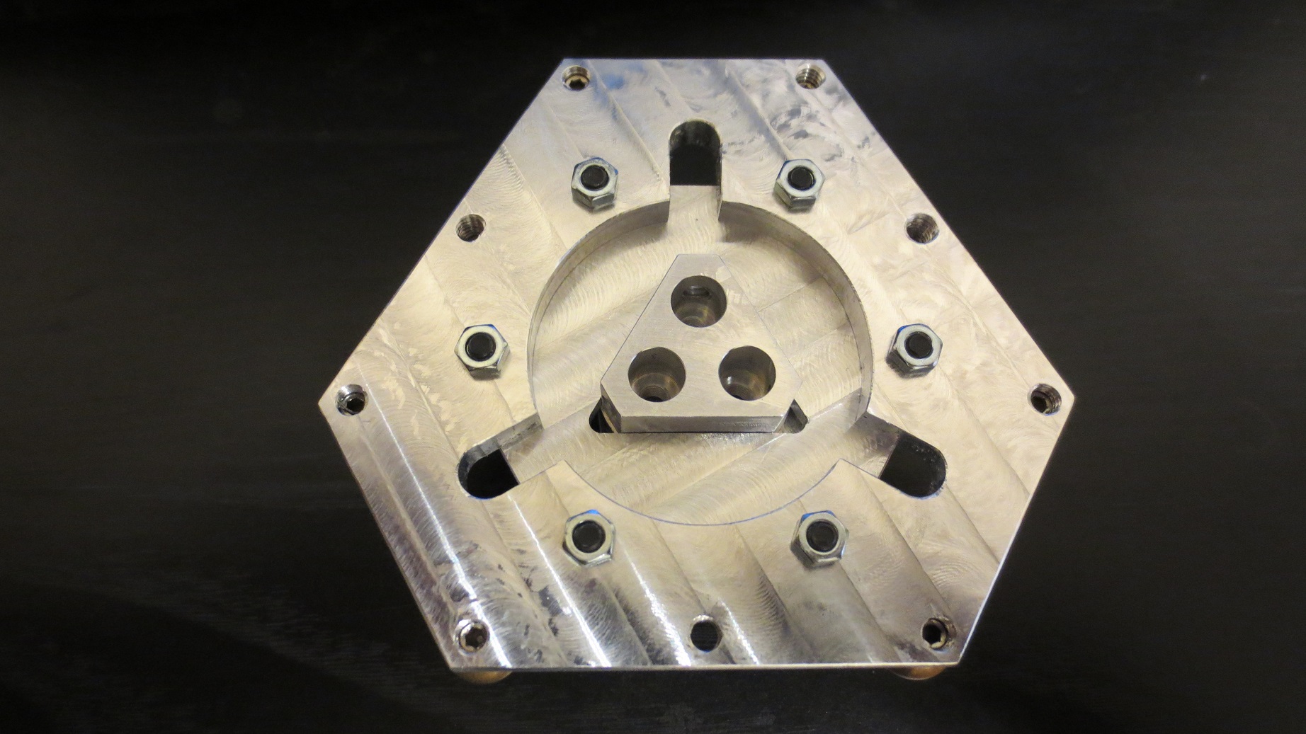 This is what the effector plate looks like mostly assembled. All of the parts are milled flat because 1/8" extruded aluminum bars are bowed. I wanted to make sure this part turned out perfect because the hotend and effector set up is critical to print performance. This thing is as rigid as it gets, and the hotend is perfectly level to the effector.