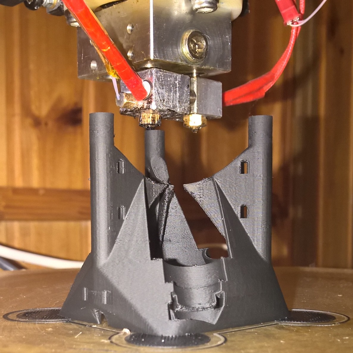 I finally got a couple of completed prints out of mine. The height of the support legs for the mount is somewhat critical, I ended up modifying the open SCAD file printing a second one, then adding spacers.