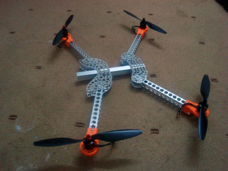 he centre Aluminum square piece is just kept to hold the forearm and back. Its not the part of Qadcopter. 930KV motors with 10inch propeller