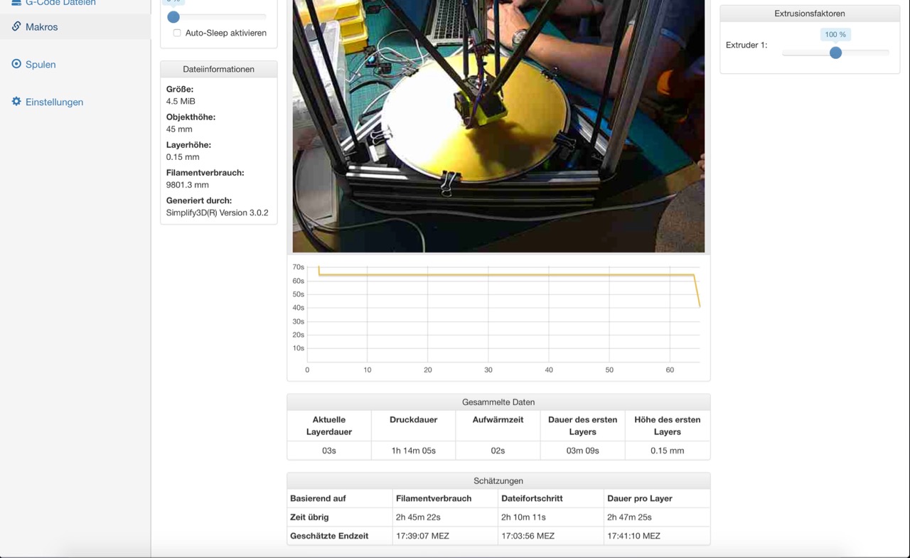 I was tired to go every 10 mins to the workshop so I integrated a videostream to the Web Control to check the progress from the living room...