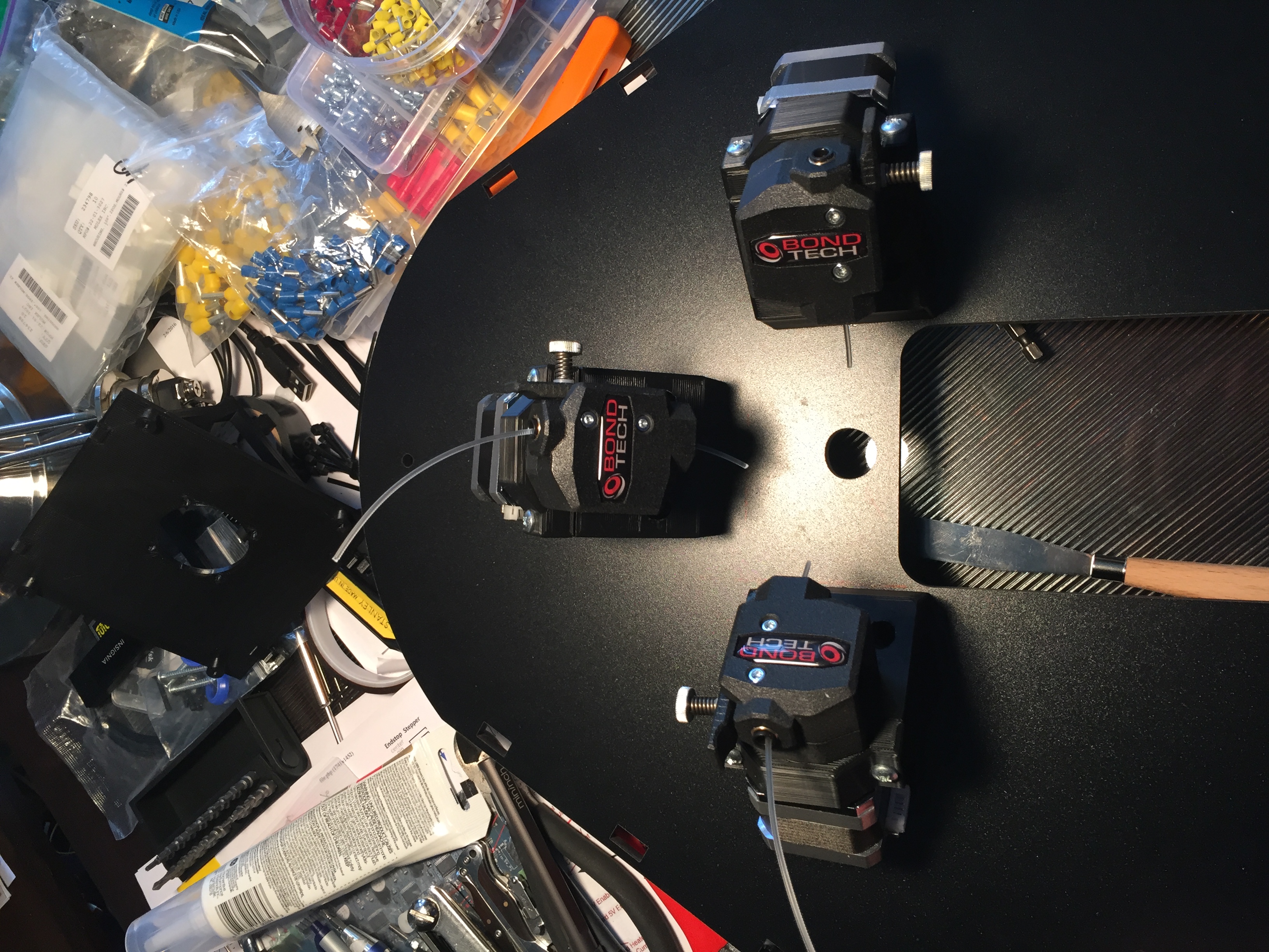 Bond Tech Extruders for the Diamond head assembled. Right now I'm printing out the other two mounting brackets.