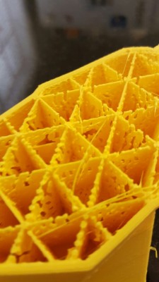 3. Swiss-cheese-like infill. I checked the extruder when the infill was printing to see if it stops and continues, but the white hand-turning-gear was slowly but continuously running so it's very hard to figure out what is causing it. The fact that outer/inner perimeter does not share this issue makes it difficult to assess.