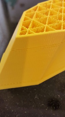 The filament is Protoparadigm PLA yellow extruding at 200'C. Using Mattercontrol via USB(I tried SD card print and it did the same)