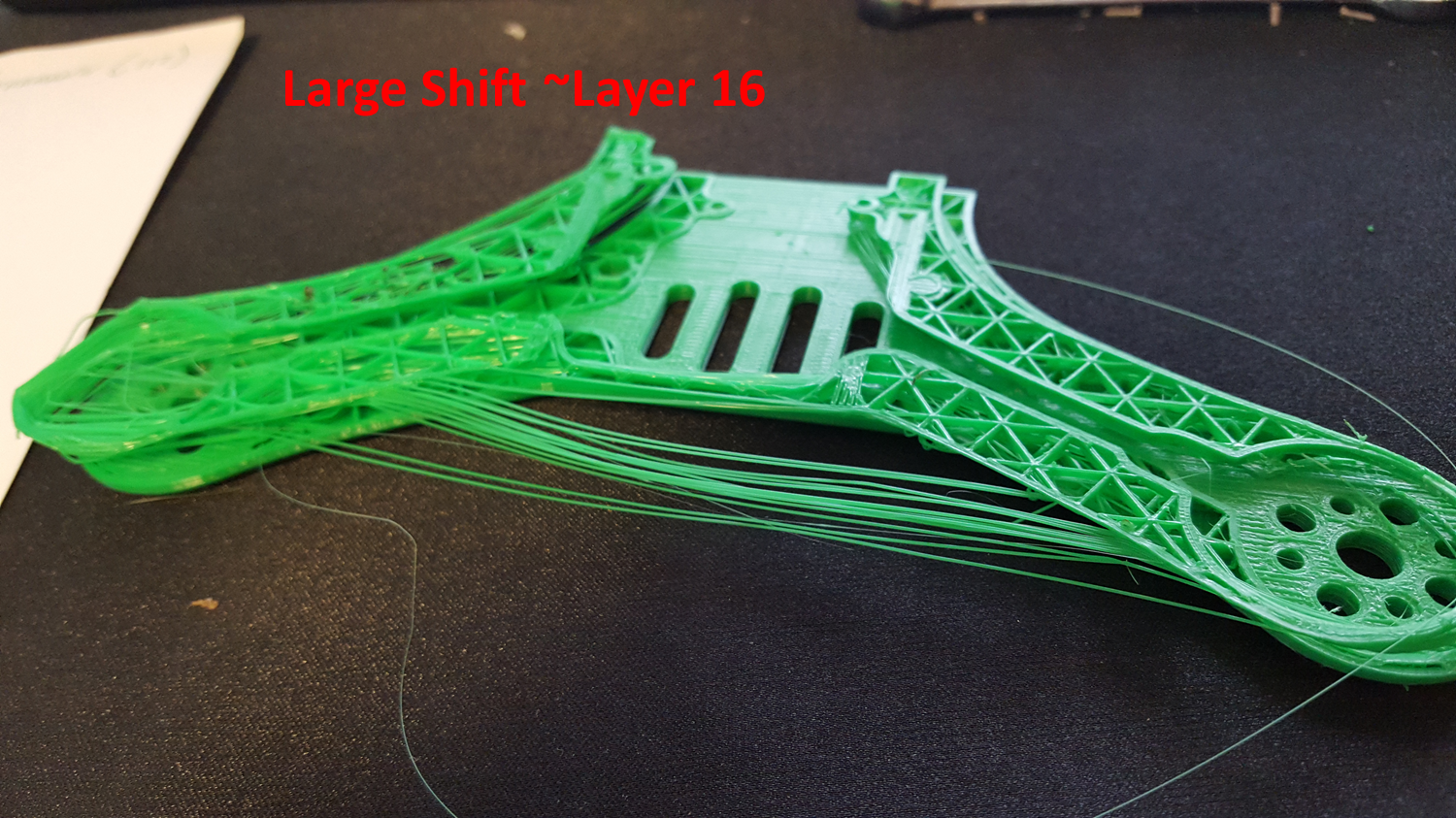 Ive included one of the parts from the quad frame that are giving me issues. If someone has some extra filament and time and want to try, Id be in your debt. (I'll send you the rest of the frame when Im done finalizing it!) Also there is a picture of a less drastic shift, and one of the worse ones, I can just peel off the shifted layer on the bad ones