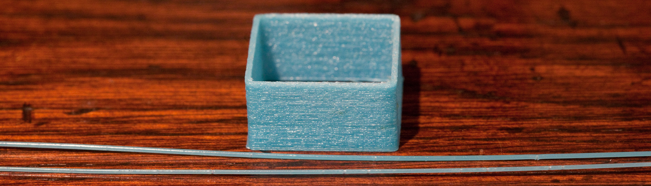 Anyway good news is that the filament is coming out much smoother now. Not perfect, but much better. I have a new single wall box printing now (filament at 1.7mm and extrusion multiplier at 1) and it's practically glossy compared to the first one. Here's the new filament and the first (mealy) single wall box. The new one's almost done. I'll post in a few min.