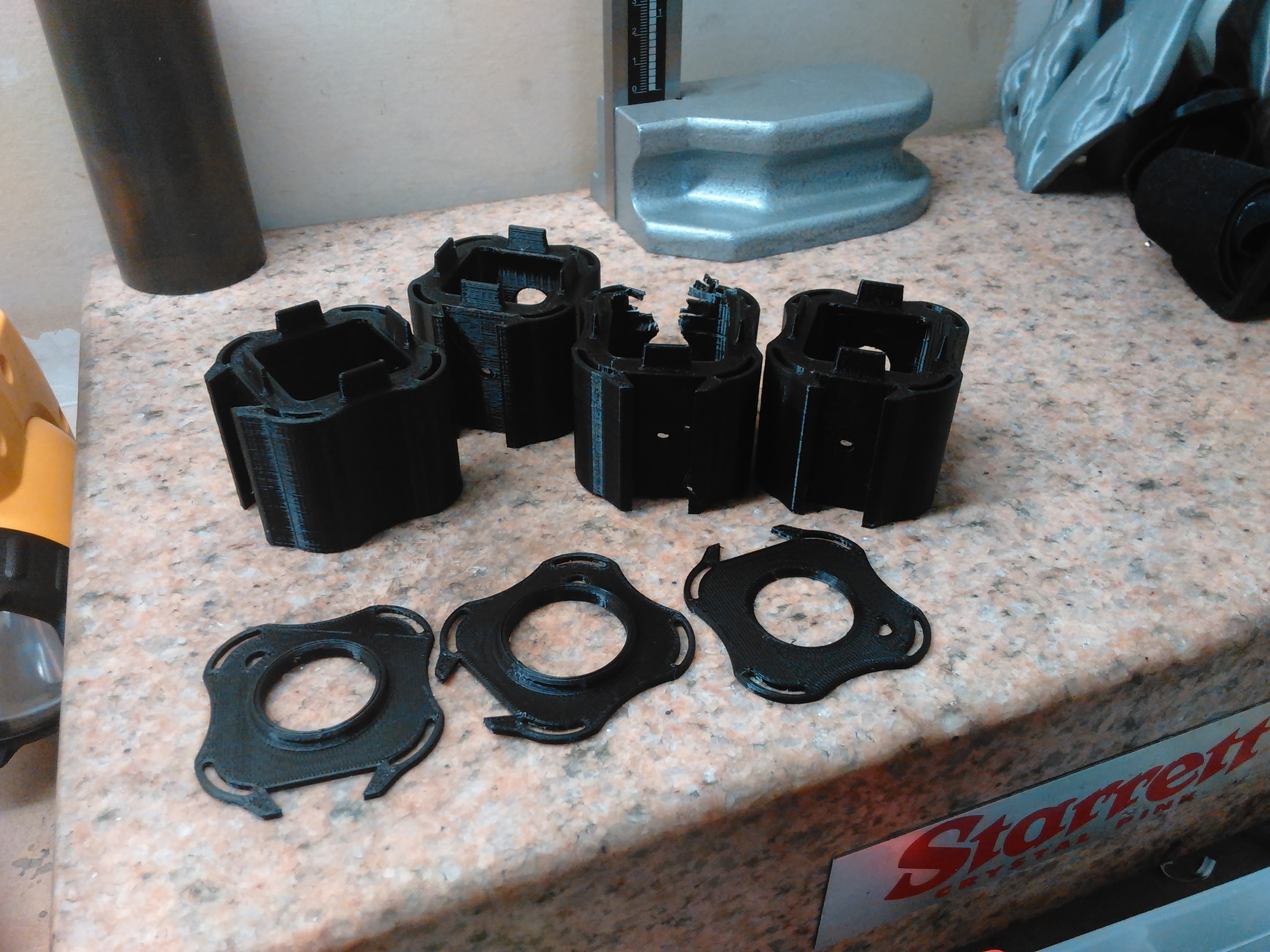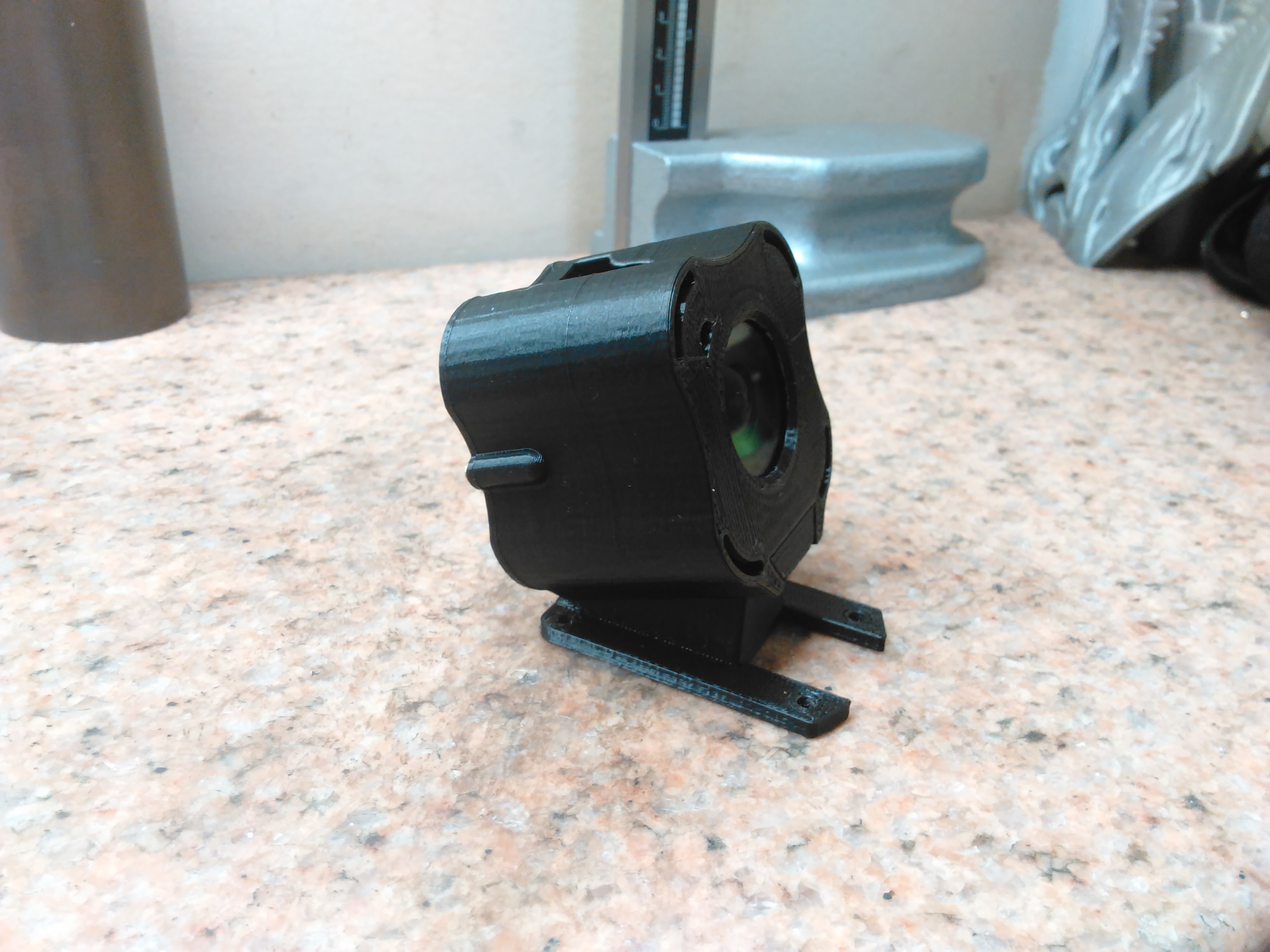Initially I printed it out of black PLA to get the design down and mating parts working properly. As you can see I had a couple iterations until I was satisfied with the design and fitment. I went thru a couple lens designs until I got one that wasn't visible in frame when recording.