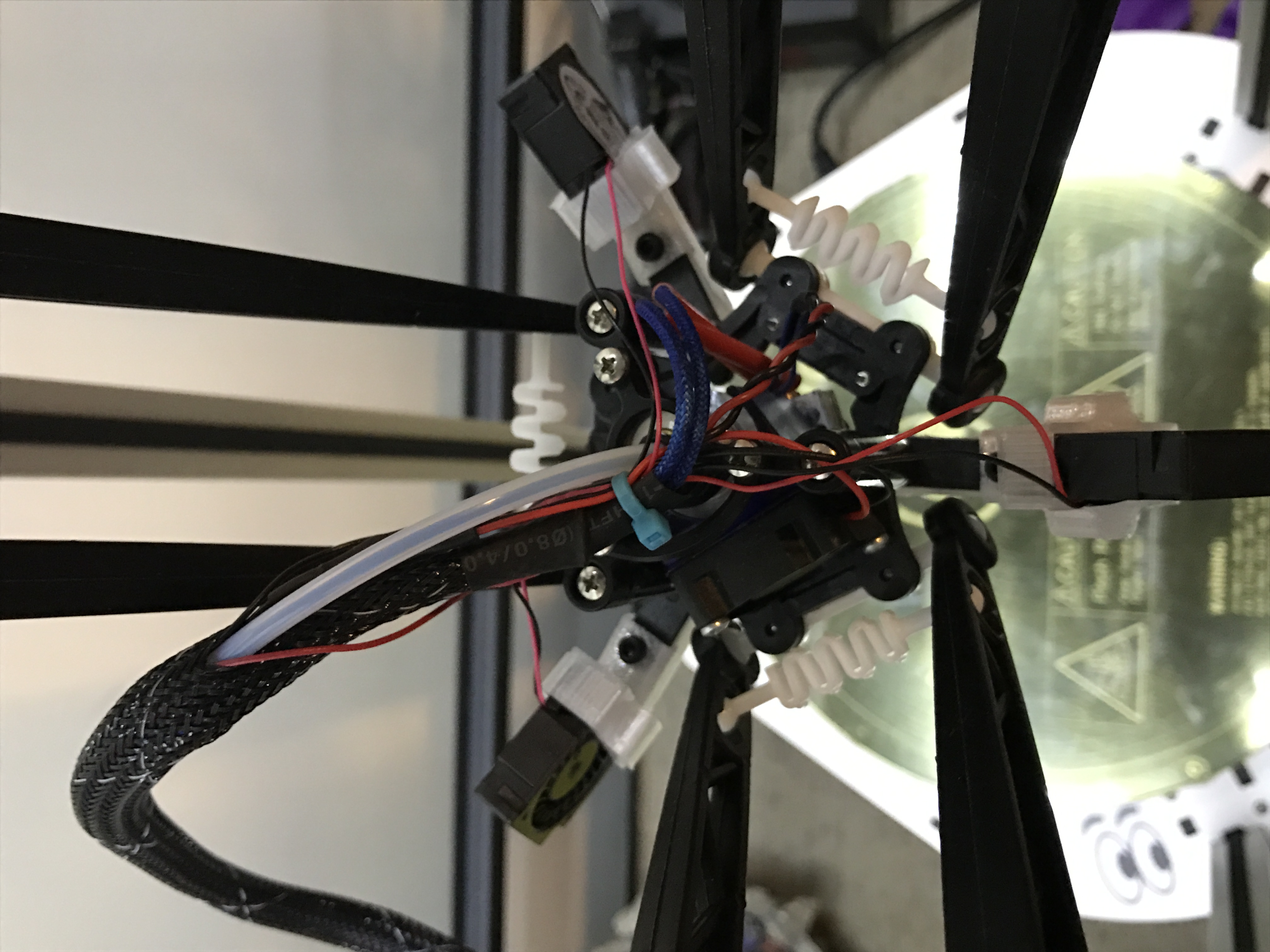 It started off as an early V2, so I upgraded the arms and the skates, then I went to an e3dv6 hot end with a 713 maker mount. I bought 2 more cooling fans from seemecnc to give me 3 part fans and hooked those up for little fans, they sure cool off everything a bunch.