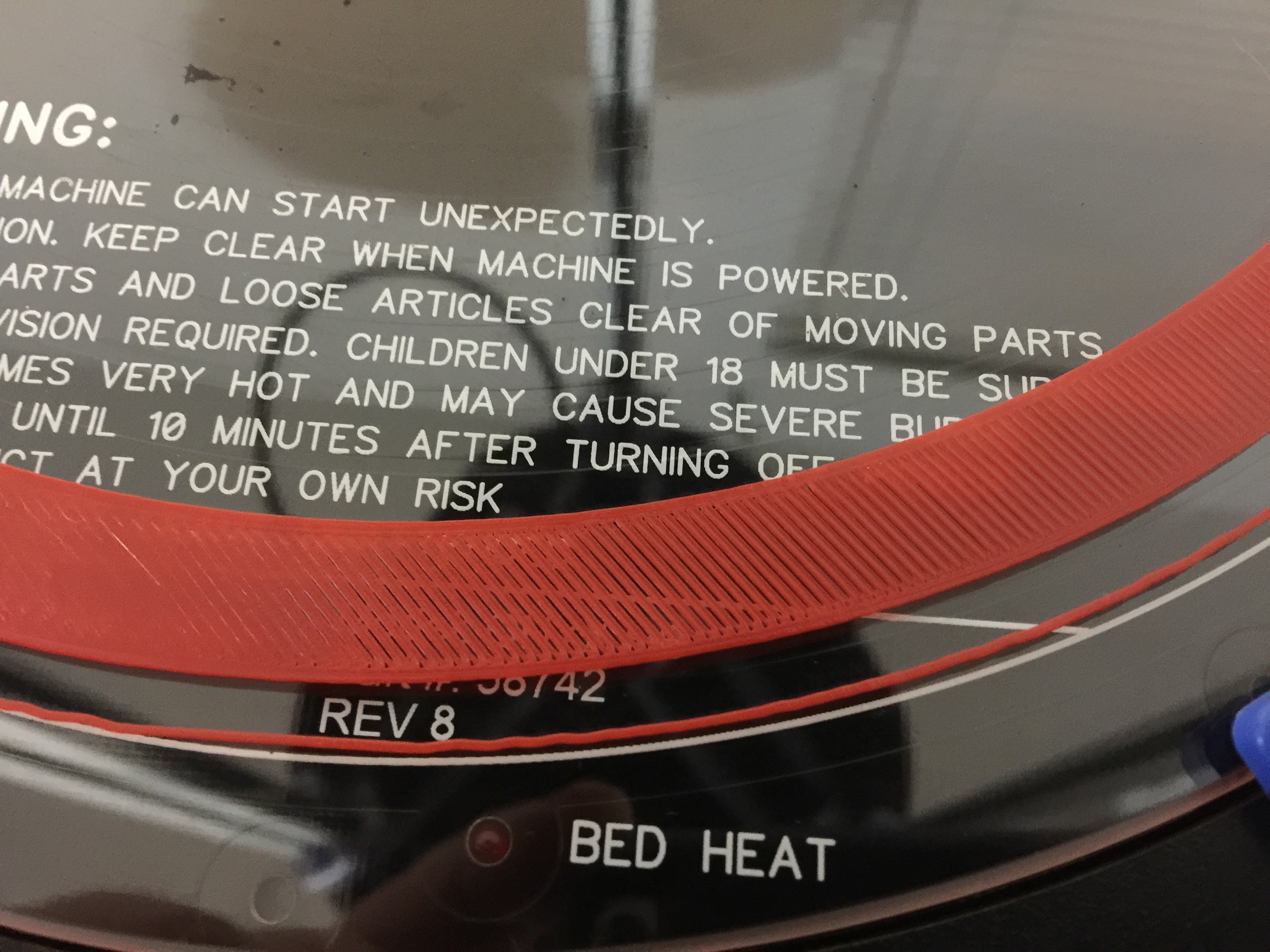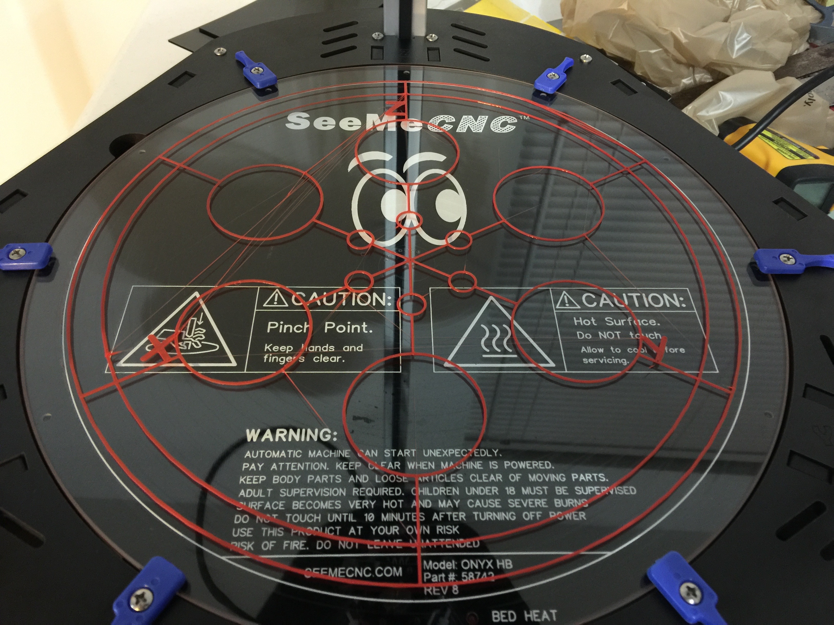 I finished my V3 on Monday and have been trying to work through problems with getting a level bed. I've run through all the calibration/setup advice in mhackney's build thread as well as advice he and others provided on Facebook, but still haven't tracked it down. I modified calibration points in the EEPROM, tried removing 3 bed mounts (since reinstalled), checked that my towers are square, adjusted end stops, etc. I've done my best to check for warpage in the plastic bed tray, bed heater, and glass plate but haven't found anything obvious. Using a micrometer, I checked the thickness of the glass around its circumference and found a maximum variation of around 0.08 mm. This evening I've been trying to adjust the height of the bed supports to eliminate high & low spots I'm seeing in my calibration ring print, with mixed success (just keep moving the high/low spots around). I tried rotating the glass 120 deg, but again that just moved the high/low spots elsewhere.