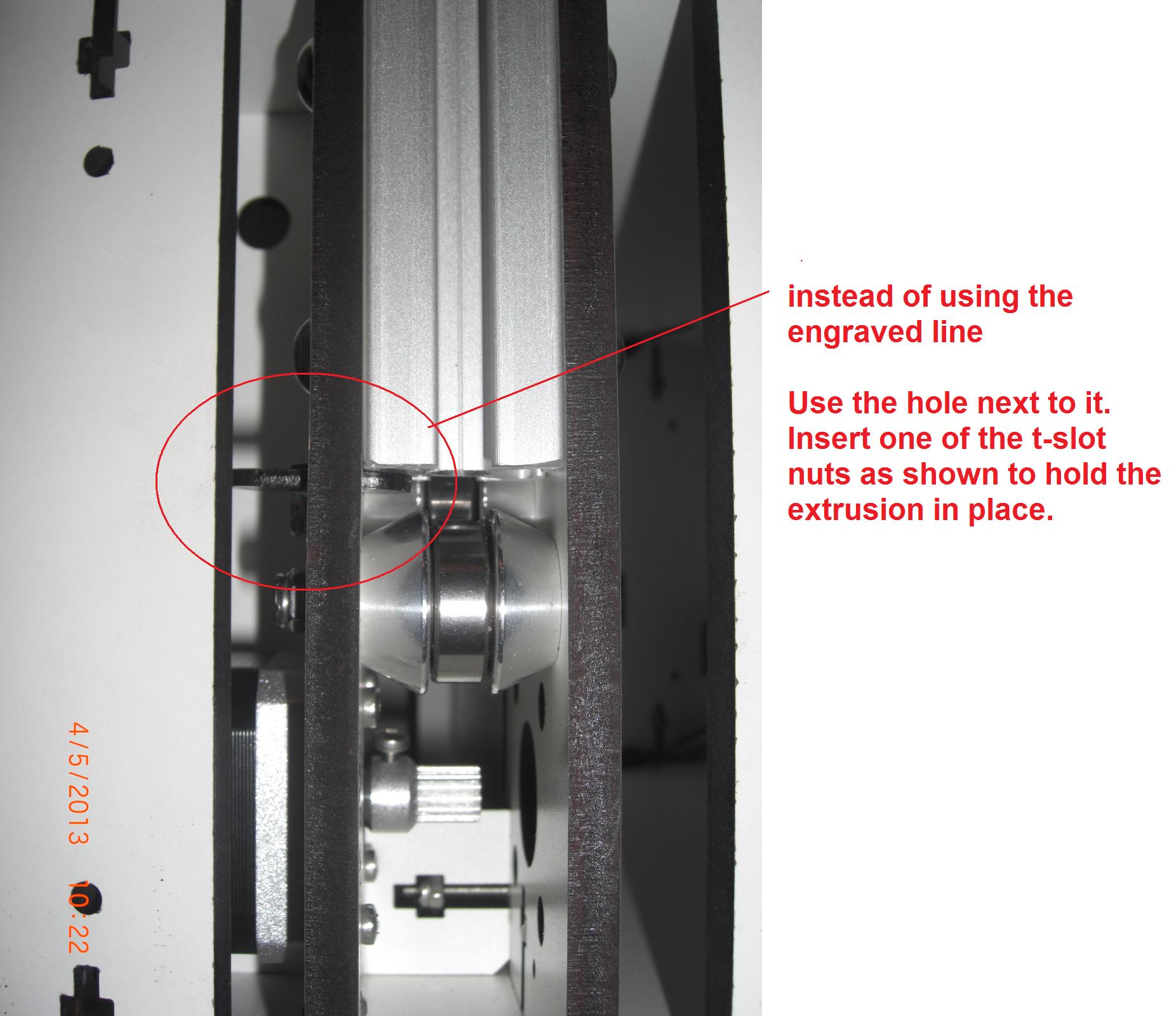 I thought I'd share this with everyone since there has been some confusion on how much gap to have between the extrusion and the frame. I am in the process of reassembly and I might as well show you how i did it. Following procedures assume you have checked your laser cut parts and all are aligned properly.