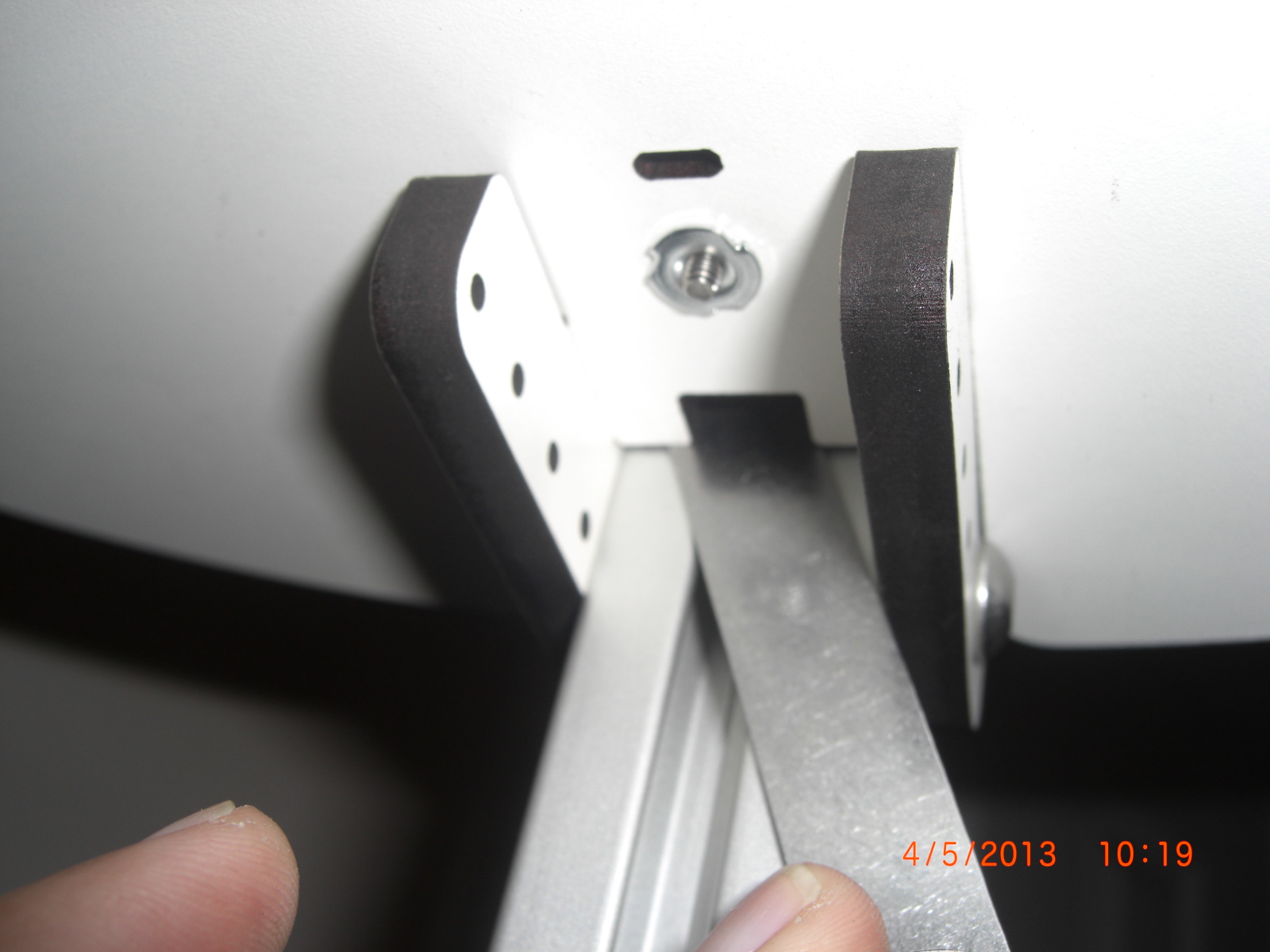 use the feeler gauge as space gauge. Press the extrusion against it and tighten up the bolts for the bottom. (select a feeler gauge that will give you the same space for the bottom and the top, mine came out to be .024in or .610mm) next go to the top, and do the same thing. once you have the space correct tighten down the bolts. Now repeat this procedure for the other two towers.