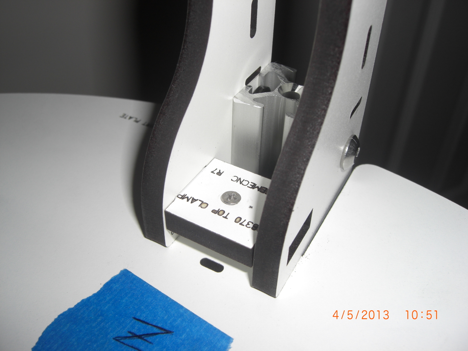 for this to work part numbers 68351 (base table top), 68368 (top support plate), and 68369 (TOP IDLER MOUNTS, check hole alignment) need to be perfectly the same. Sand if you need to square them up. photo shown below of the two circular plates stacked on top of each other. yes i know my spelling is wrong. Once your ready to install the aluminum extrusions here's how to get them perfectly the same height. installation bolts are installed snug but not tightened yet at this point. If you dont have an extra t-slot nut, use whatever that fits in that hole. WHATEVER, you used here make sure that the material is snug against the extrusion. (note: this assumes that all your extrusions are the same length also, check before you proceed)