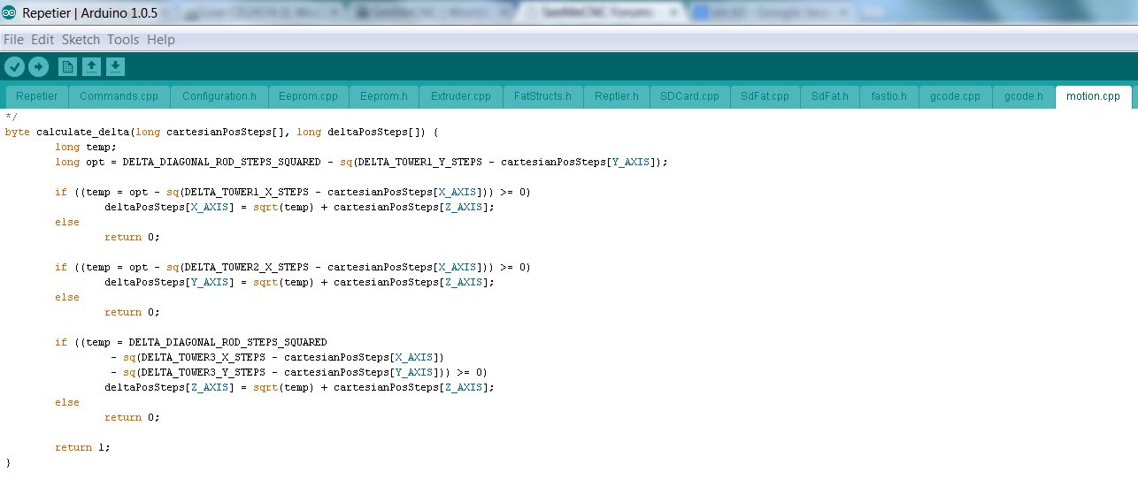 I have the DELTA_TOWER code in Repetier Version 0.90C and I substituted decimal equivalents for the SIN and COS values in the equations shown below as I was incrementing by +/-0.1 degrees up to +/- 1 degree: