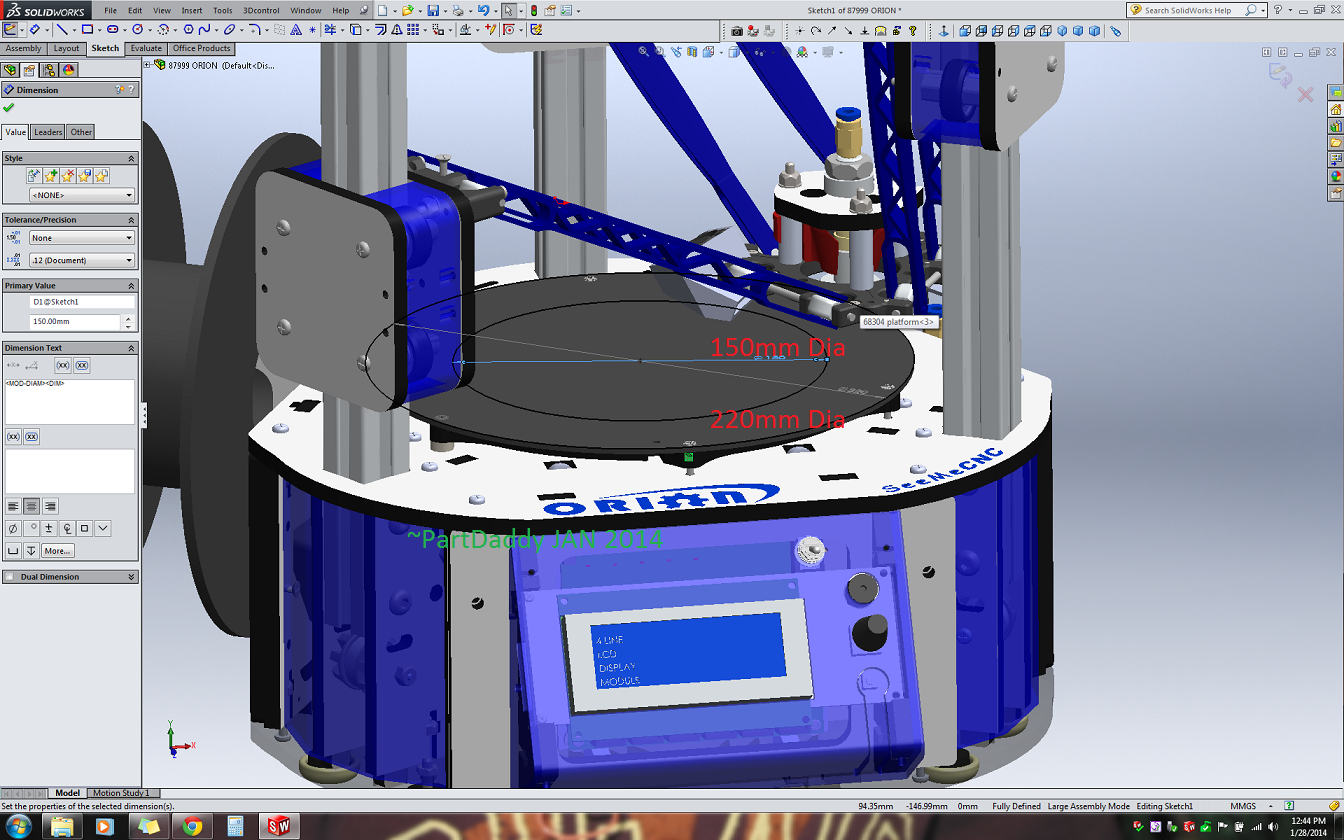 PartDaddy wrote:I designed the ORION HB for a 7 inch diameter print area. A future design of the carriage will allow an additional inch (25mm) of diameter without any modification to the machine.