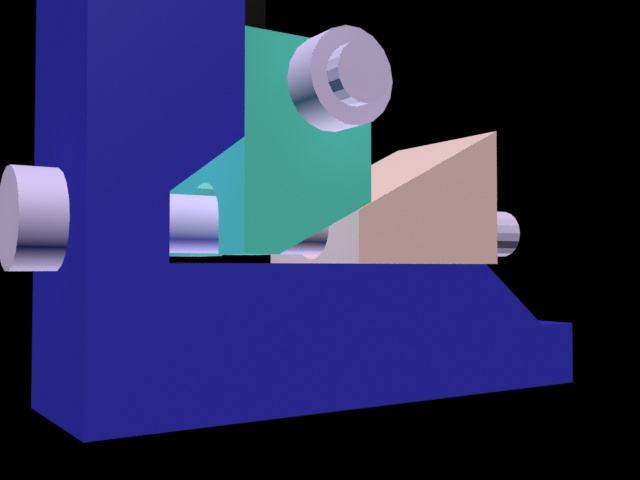 You read my mind and I wanted to just post the intitial concept. Here is a view of the pieces with some clearance holes or slots for the bolts... I also extended the base that the pink block would rest on when the belts were loose.