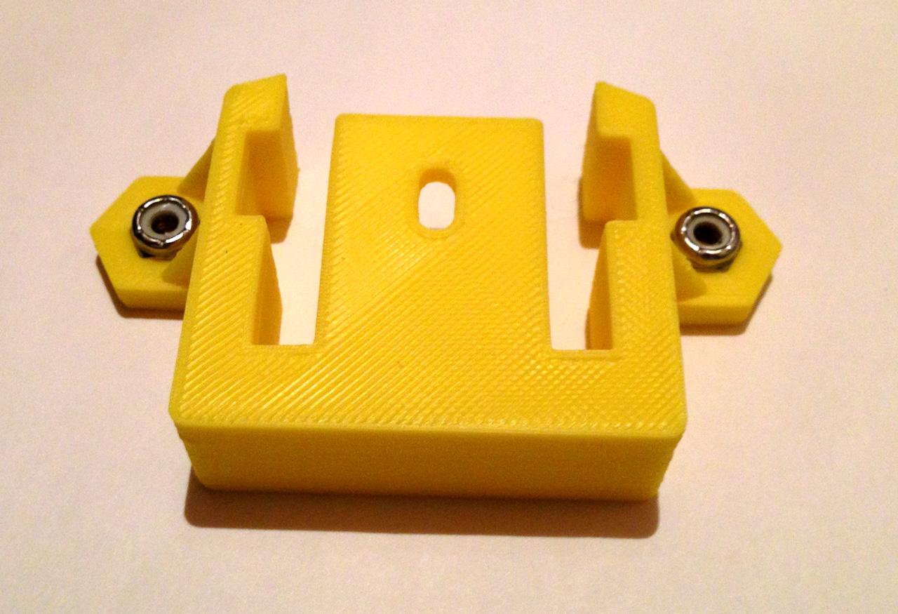 Here was my first attempt and clearly I've got several dimensions and screw tolerances wrong. Should be easy to correct and try again. I've got to say that even though this might not be the most important thing in the world, it's really fun being able to 'craft-then-print' do-dads like this. Especially if it works (Time will tell)