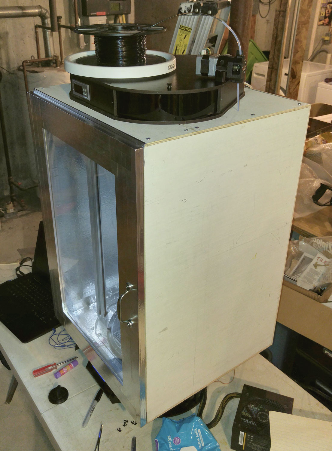 given the summer humidity here on the Maine coast I am thinking of a dollar store plastic cake box to cover the spool and lazy suzan to keep what ever filament is mounted dry.... I have some .50BMG ammo cans that I think will work for the other opened filament storage with the silica gel packets.