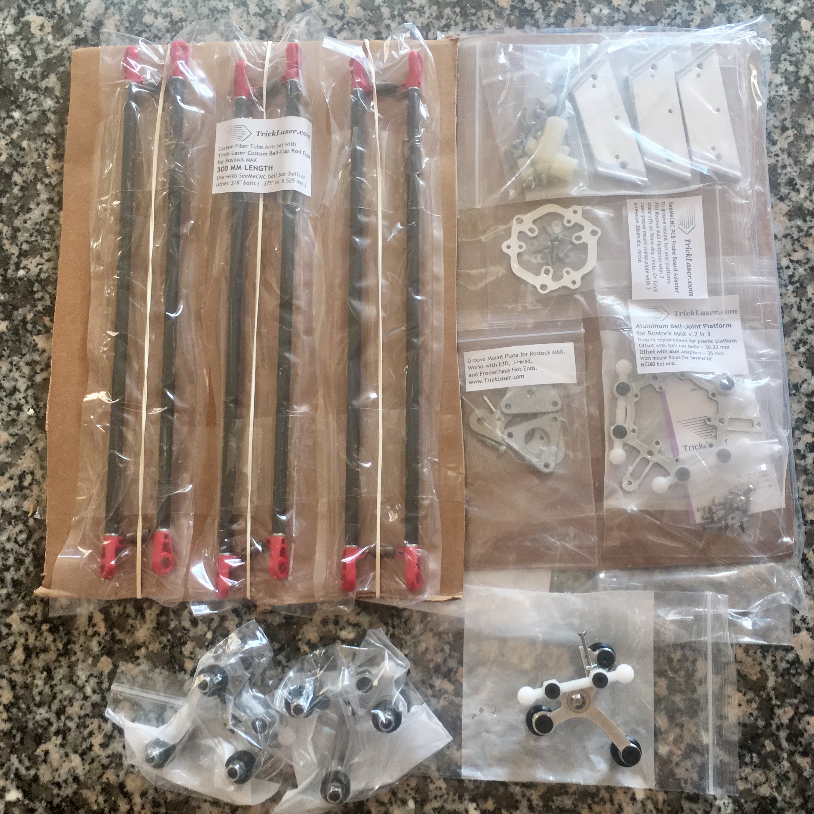 Then along comes Brian and TrickLaser's new Trick Truck X Mini Carriages and new ball-cup CF arms and matching effector. These will accelerate completing this machine and provide basically a "assemble from existing parts" solution that might be more appealing to folks wanting a state of the art, rigid delta printer.
