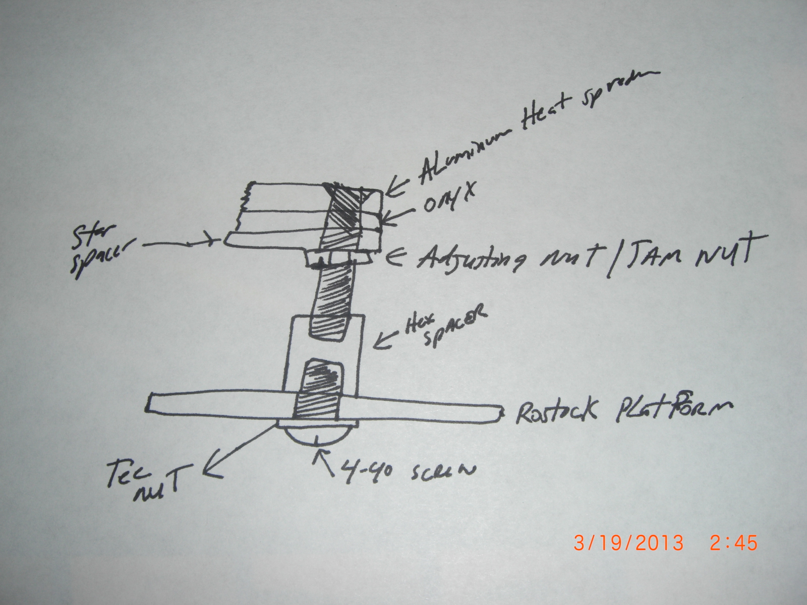 here is the other idea, the adjusting screw would go through a rod, in the top holes. I might use 4-40 studs instead of screws and have an adjusting nut at the top.