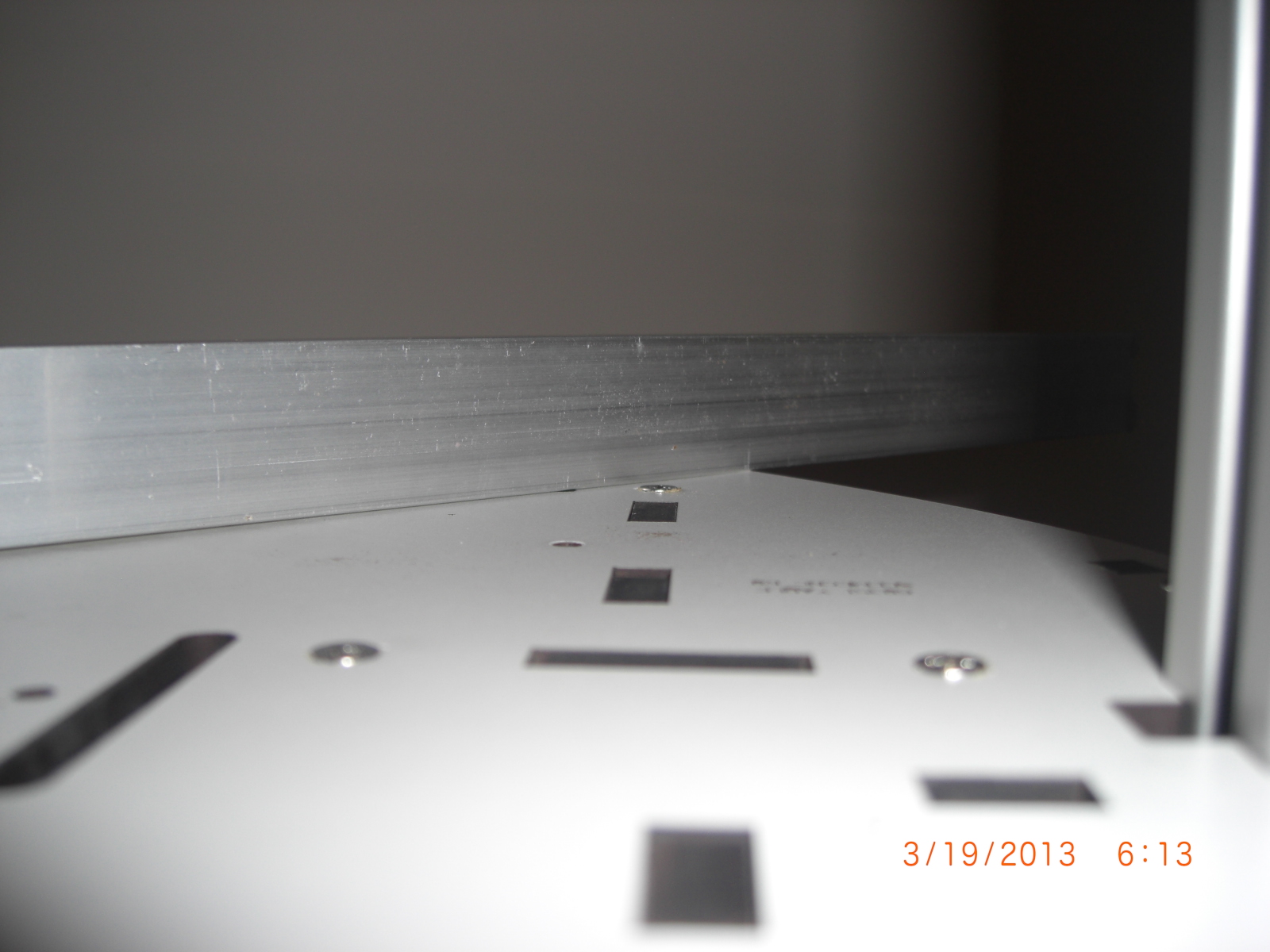 everything is snug up even with the partitions which troubles me, because that means the laser cut parts aren't square.mhackney wrote:That's a bit odd. Mine was dead flat on assembly. I would have thought all of those internal base partitions would prevent it from bowing like that. Are all the screws snugged up? How's the bottom?