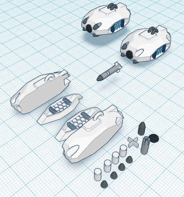 Here's the model design I came up with. Just good old TinkerCad which is where I typically draft my stuff before moving it into Blender. Here is how I split up the model. I didn't do a good job with rear exhaust and had to use my ABS putty to fix it and sand it down. You can't tell though!