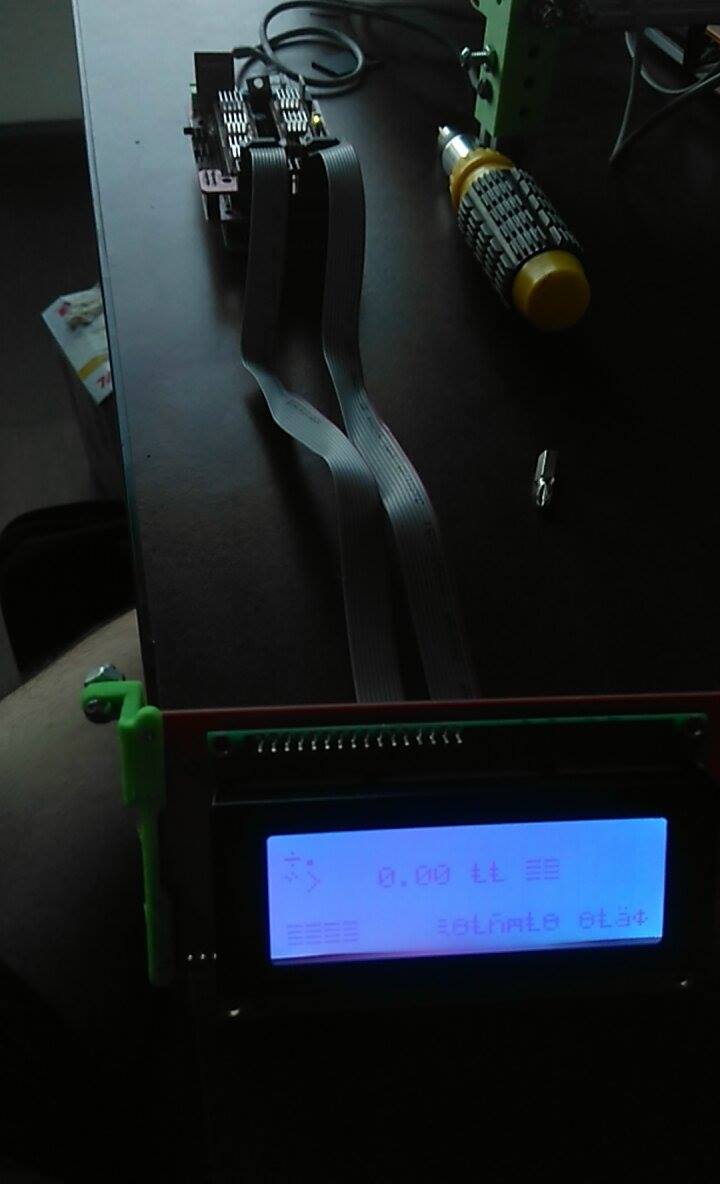 The problem is: The LCD isn't working. The printer boots-up and the screen comes on, but I see strange symbols and numbers. I enabled sound effects in the configuration to identify if the screen was recieving input. The printer does recognize the pot and even the Stop button on board. The LCD was tested outside the printer and with the 12V Supply and alone with the USB 5V supply. In either case the behavior was the same.