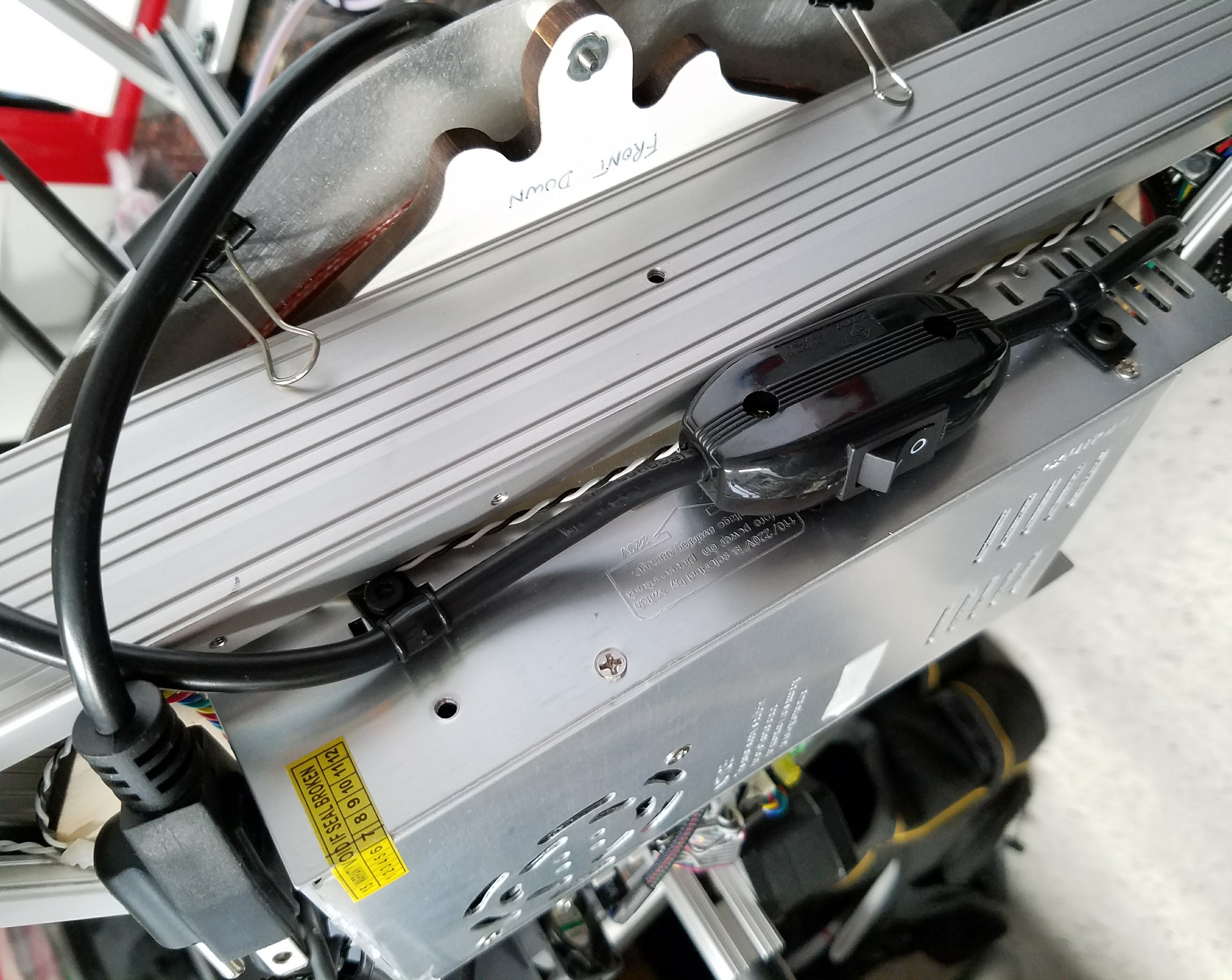 Some I mounted a IEC connector in the bottom electronics mounting plate, but that was a bit unhandy to reach switch under printer.