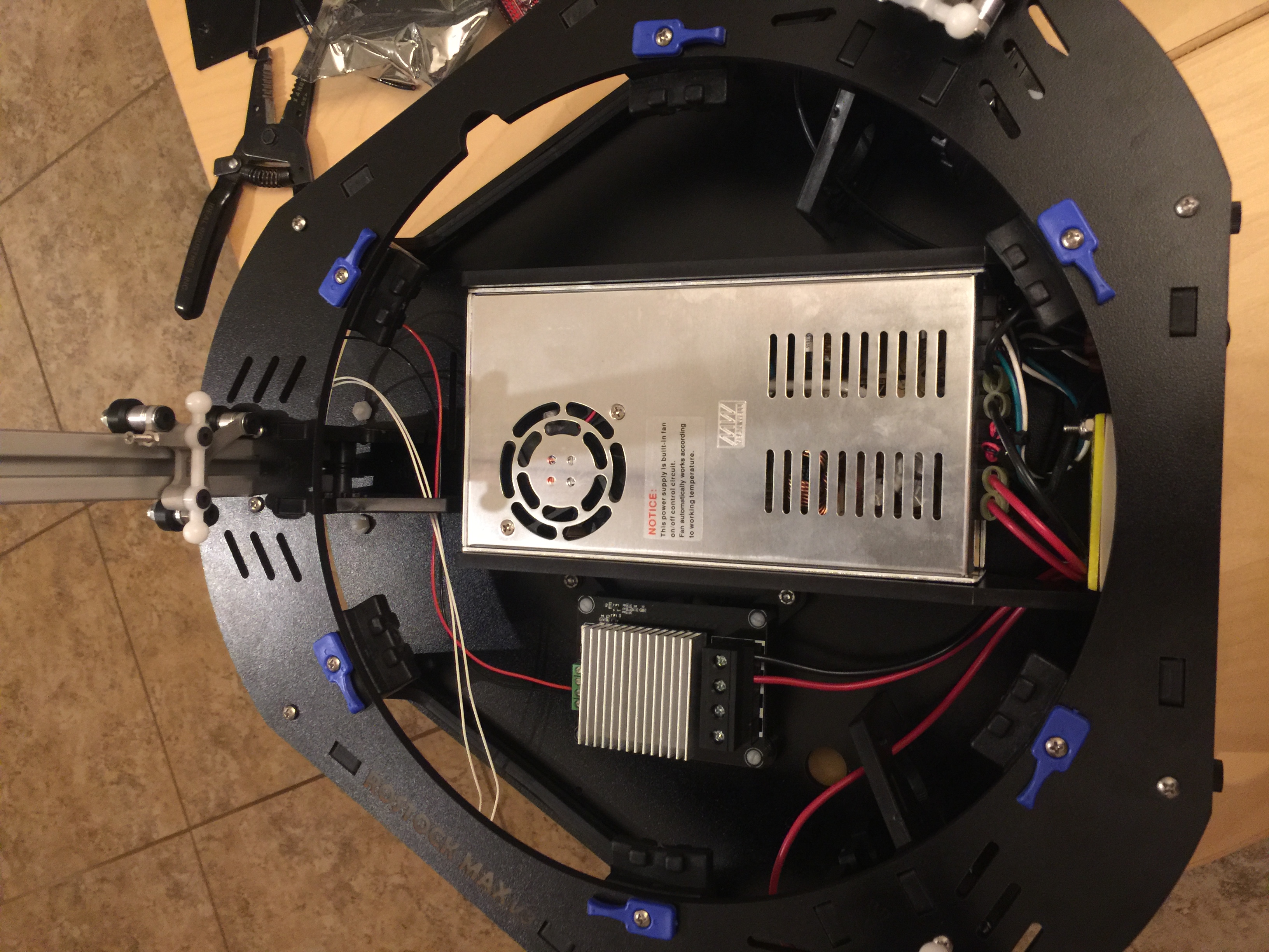 I printed out a couple of wire spools to keep things under control. Also you will notice I installed a short terminal strip for power distribution just in case I wanted to add a fan or lights at a later date. The strip is rated for 25A so it will not be a safety issue.