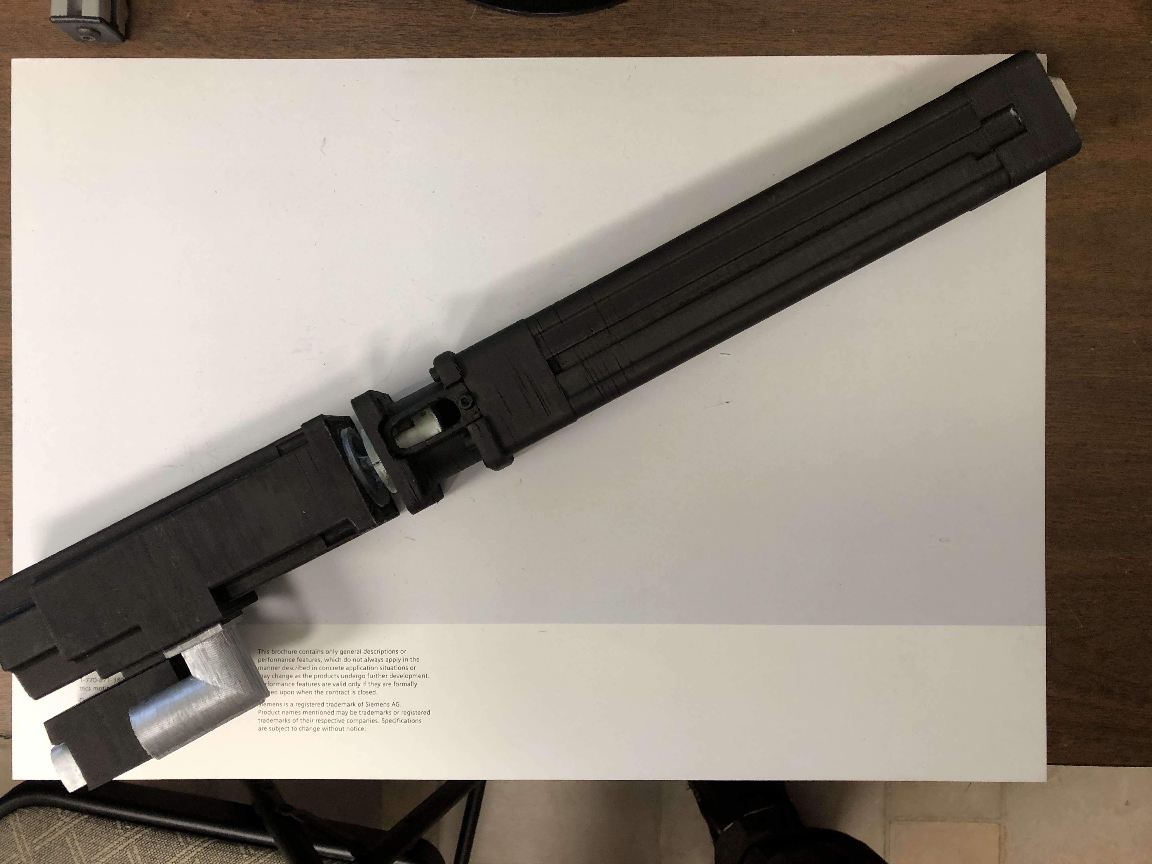 I'm new to 3D printing. I recently purchased a Rostock Max V3.2, and needed something work related to help justify the cost. I work as a motion specialist for an industrial distributor, and on a whim downloaded a stp file for a Siemens 1FK7022 servo motor. I used Cura to slice it, and the first print turned out very realistic after a quick paint job. So I went one step further and downloaded a Tolomatic RSA24 linear actuator 3D cad file and printed it. After I painted it, I put the servo motor into the actuator, and to my pleasant surprise they matched up just as the real thing! They don't move like my real demo, but they are certainly a lot lighter!