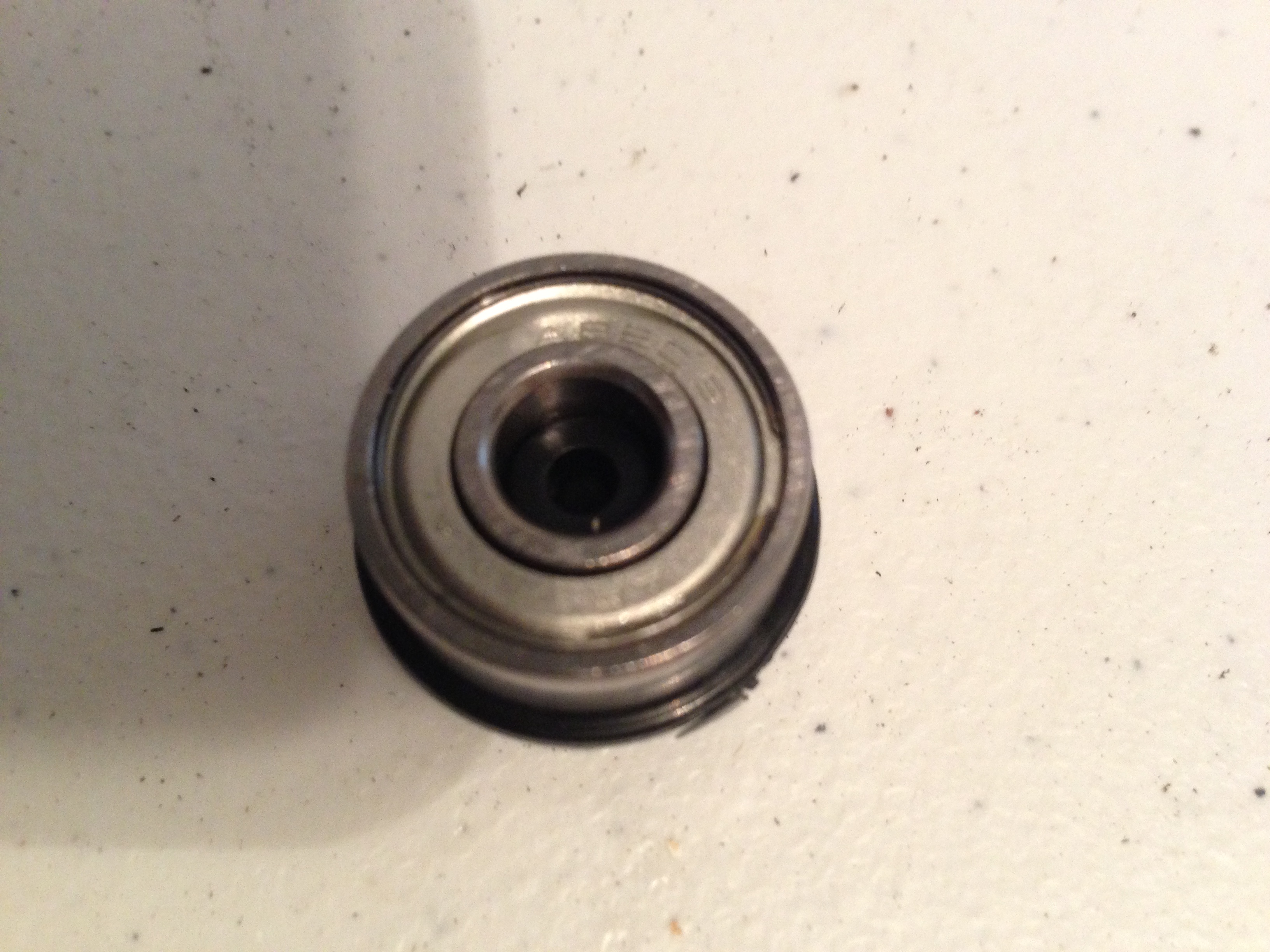 Either way I had issues with on of the bearings. After installing all of the bearings I was testing the smoothness of them and I noticed one was binding. After removing the discrepant bearing I found this.