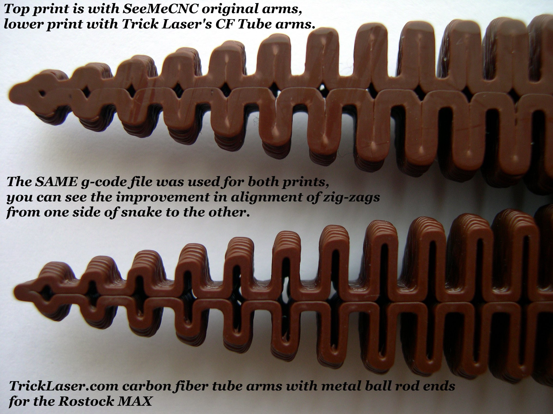 Here is a example of the improved print quality with the carbon fiber tube arms from Trick Laser.