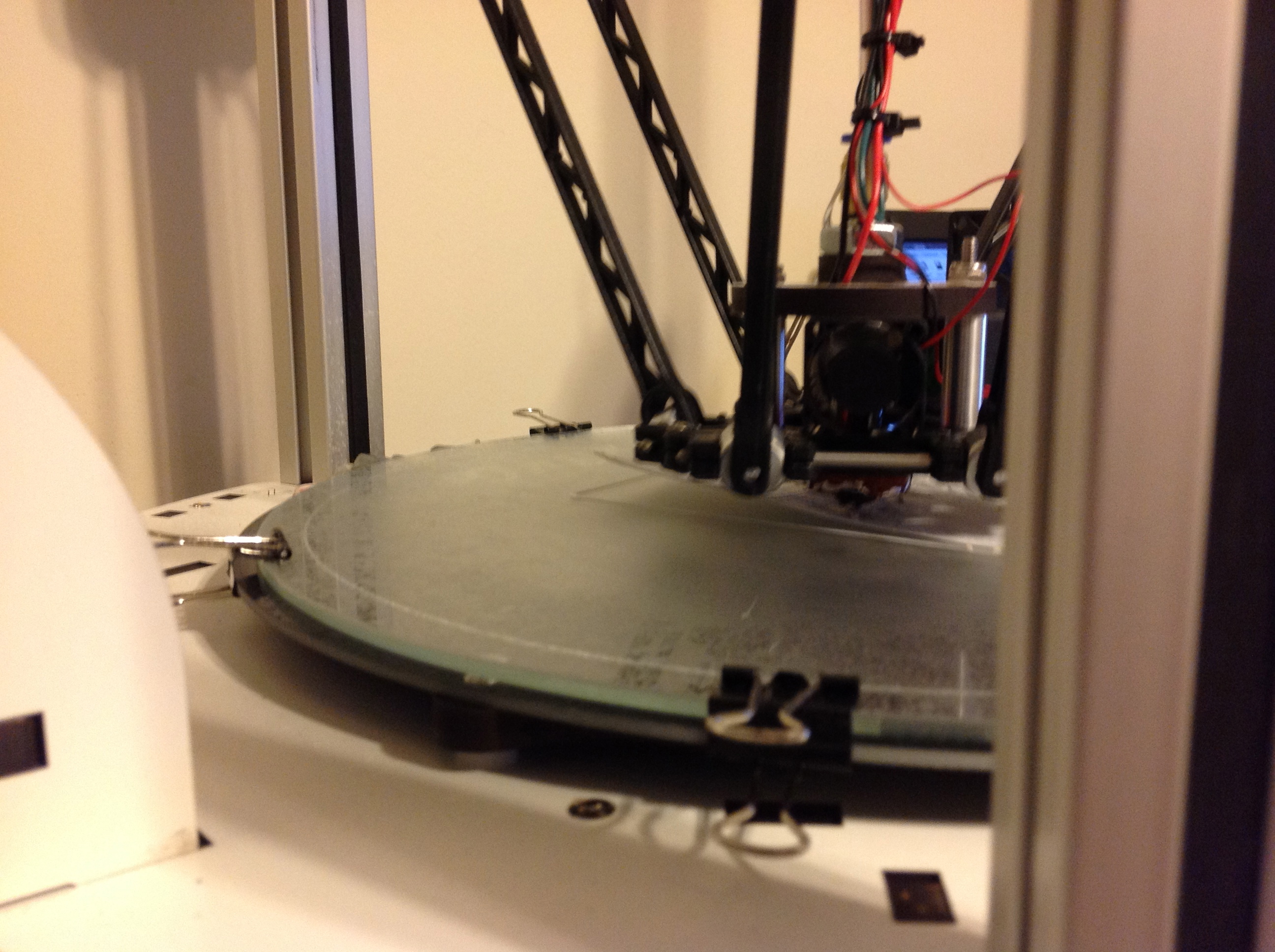 I started printing the first blade of the fan but had to kill the job when about half way through both ends detached from the glass and the nozzle just pushed what had printed around the bed.