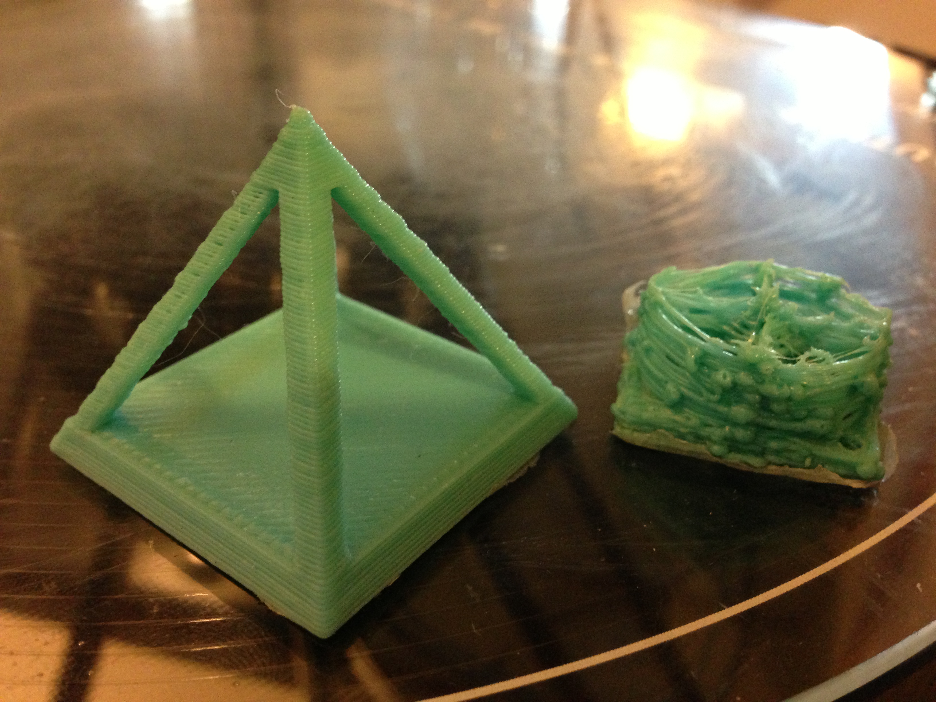 I figure it must be either the PTFE or the nozzle causing the problems. I did not have a PEEK fan at the time of the original failure. So I suspect that is when the PTFE lining was damaged and now is too snug to be free and easy flowing. I don't know how the nozzle would become a problem from simply sitting at 220c for a few hours. That's what it does anyway. Oh and I measured the filament diameter after the failure so that is current. I do think my filament was relatively damp. I have since baked it and tried extruding into open air and the extruder still slips (even at 235c when the pyramid was done at 220c). Everything ABS.