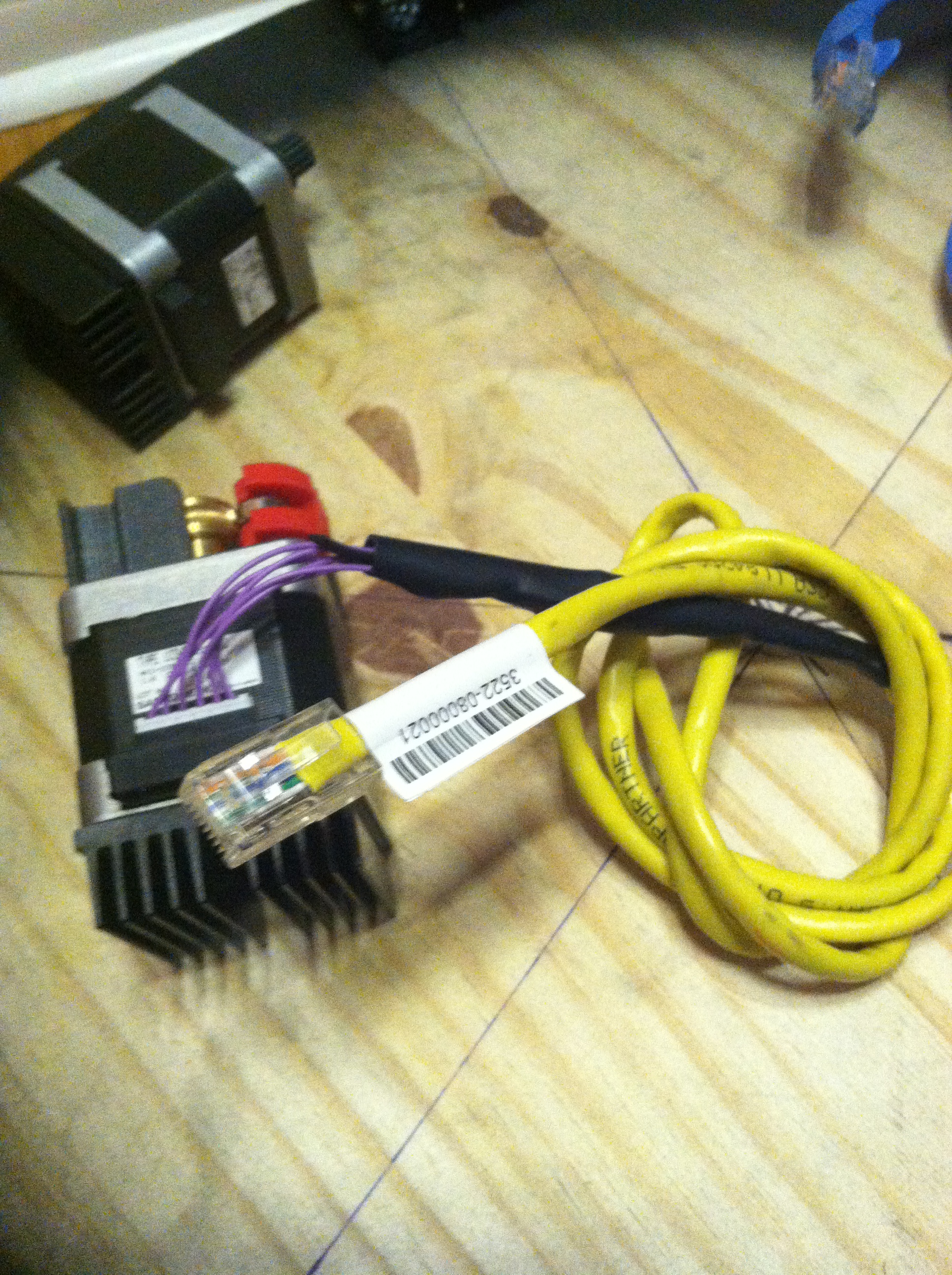 Here is the motor wired into a CAT5 cable. I plan on using the plugs as a quick disconnect.