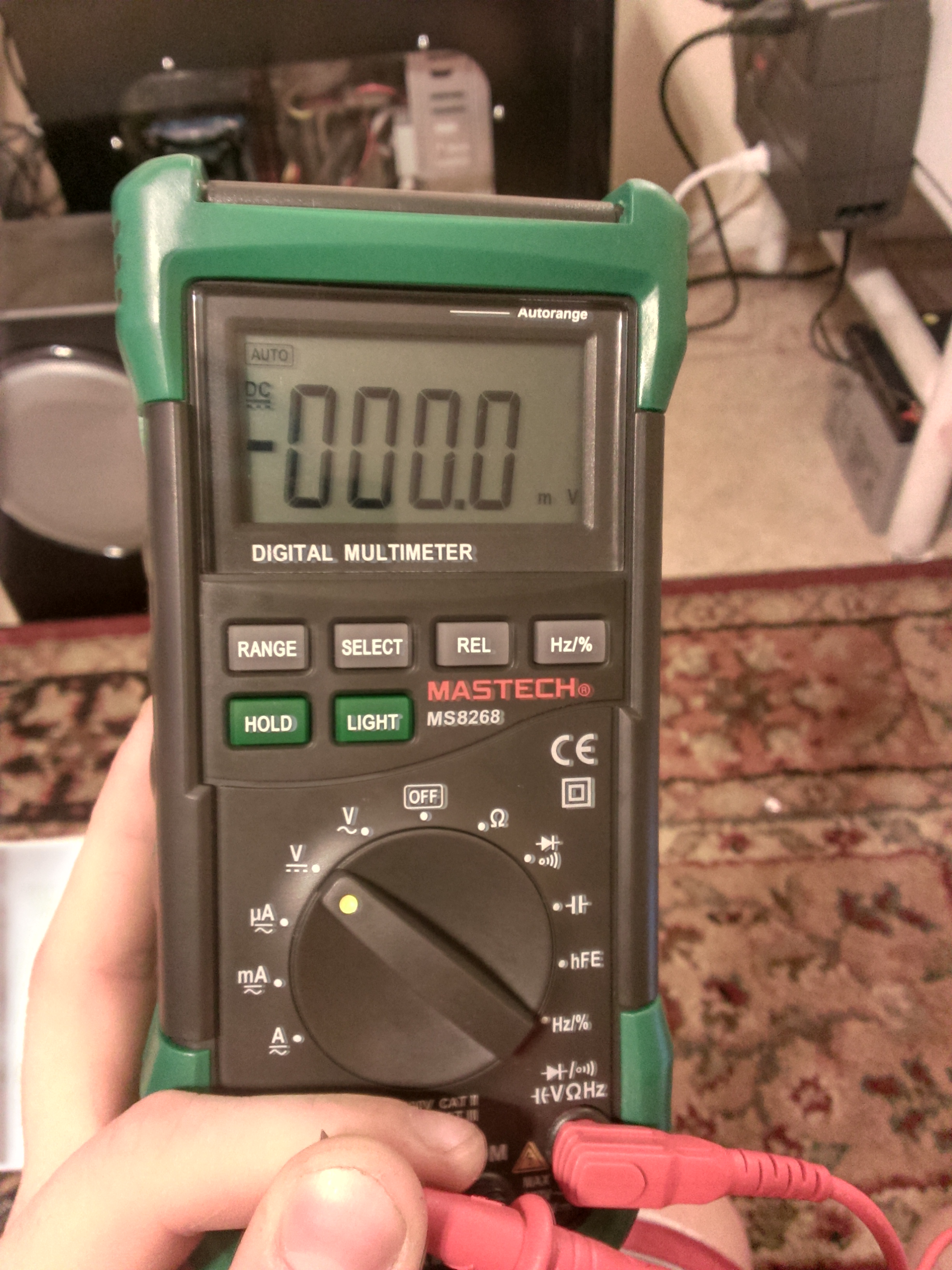 lightninjay wrote:Hey Eagle, further testing proves even further inconclusive results. I'm certain I'm using the meter properly, but now I've gotten a different set of measurements than before!