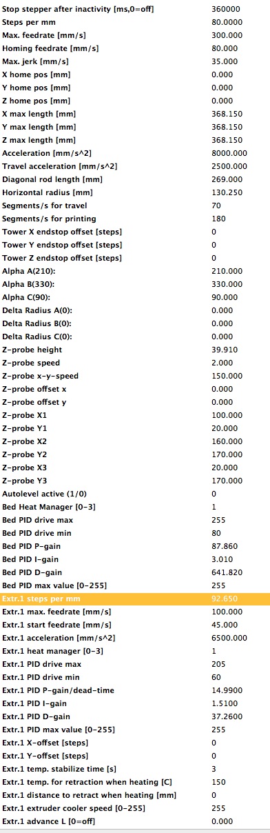 I have the speed at 35 mm/s and 4.5mm retraction. EEprom steps / mm is set to 92.65