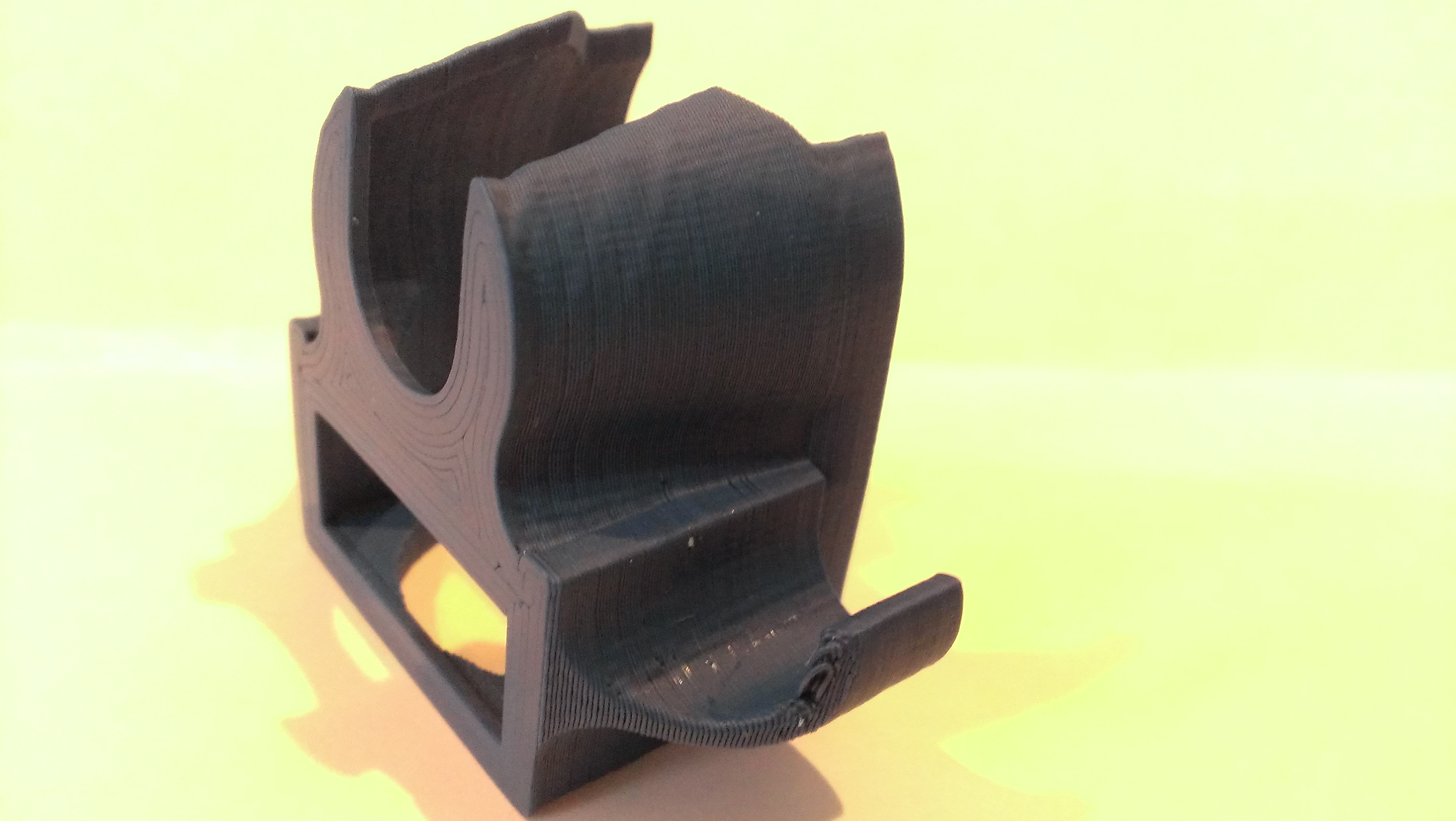 Now with the correct filament diameter. Looks much better. The areas having any bridging had drips, but the quality of the other surfaces is much better than I expected from a printer I just assembled. And frankly a very quick calibration.