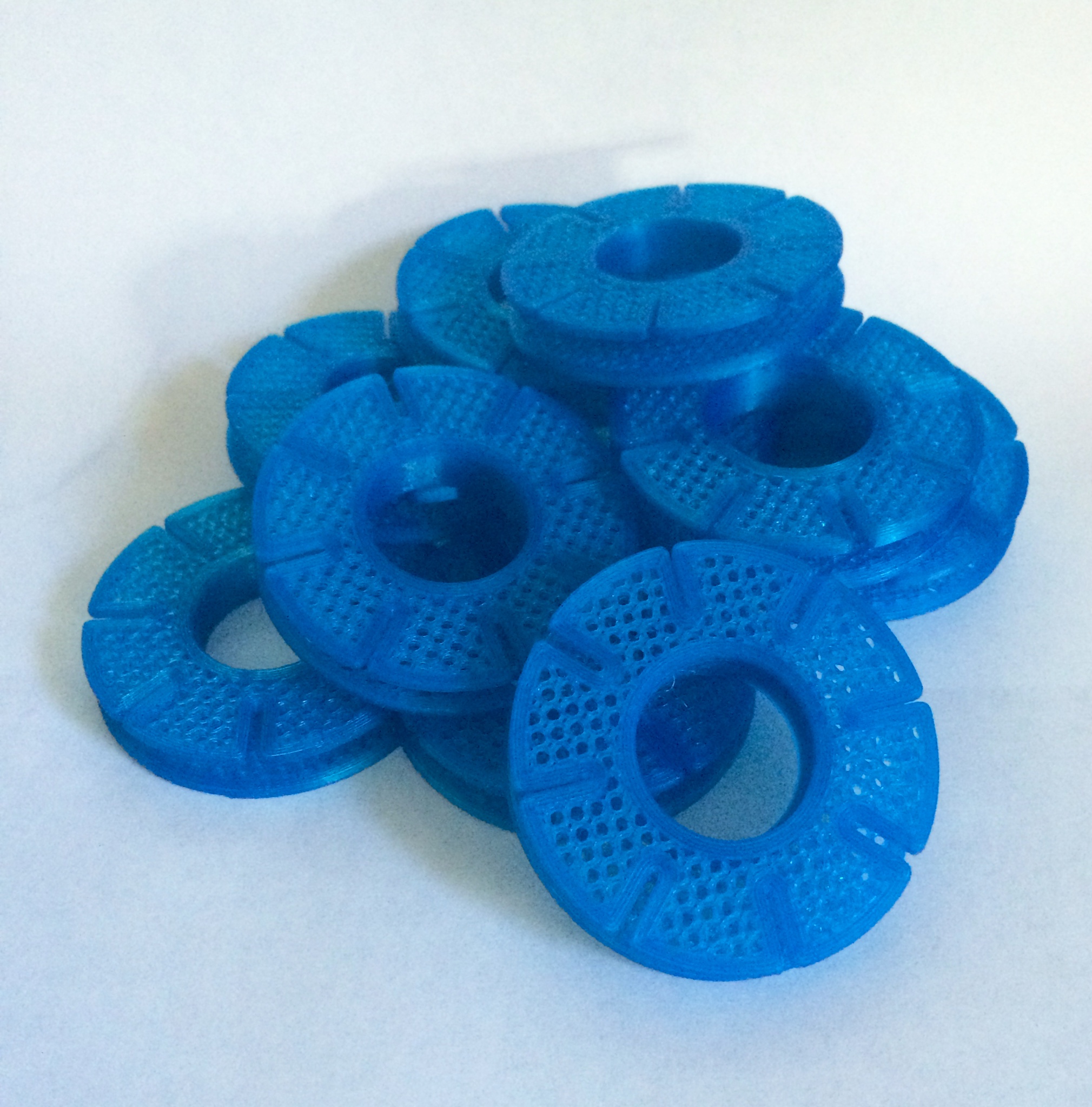 These are both difficult parts to get stuck on any build surface and the BuildTak had no problems with first layer lift or curling. And all parts (well, actually 40 pieces of the line holders since they are printed in 2 halves at the same time) came off with a reassuring and crisp "pop". I do clean the surface with isopropyl alcohol wipes between prints to remove any finger grease, etc. NEVER use acetone on this material, it will ruin it.