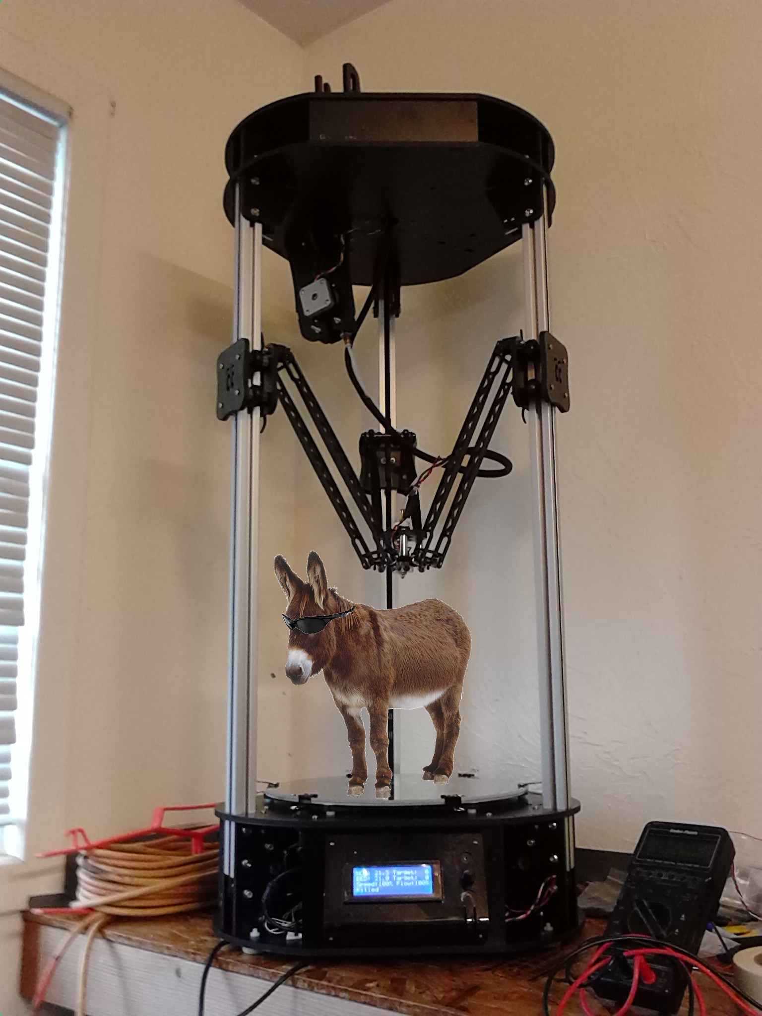 Demolishun wrote:An awesome donkey with shades model needs to exist and be put up on Thingiverse or some other 3d sharing site. Everyone should be able to make their printer a bad ass printer! I will see if my kids can model up one for me.
