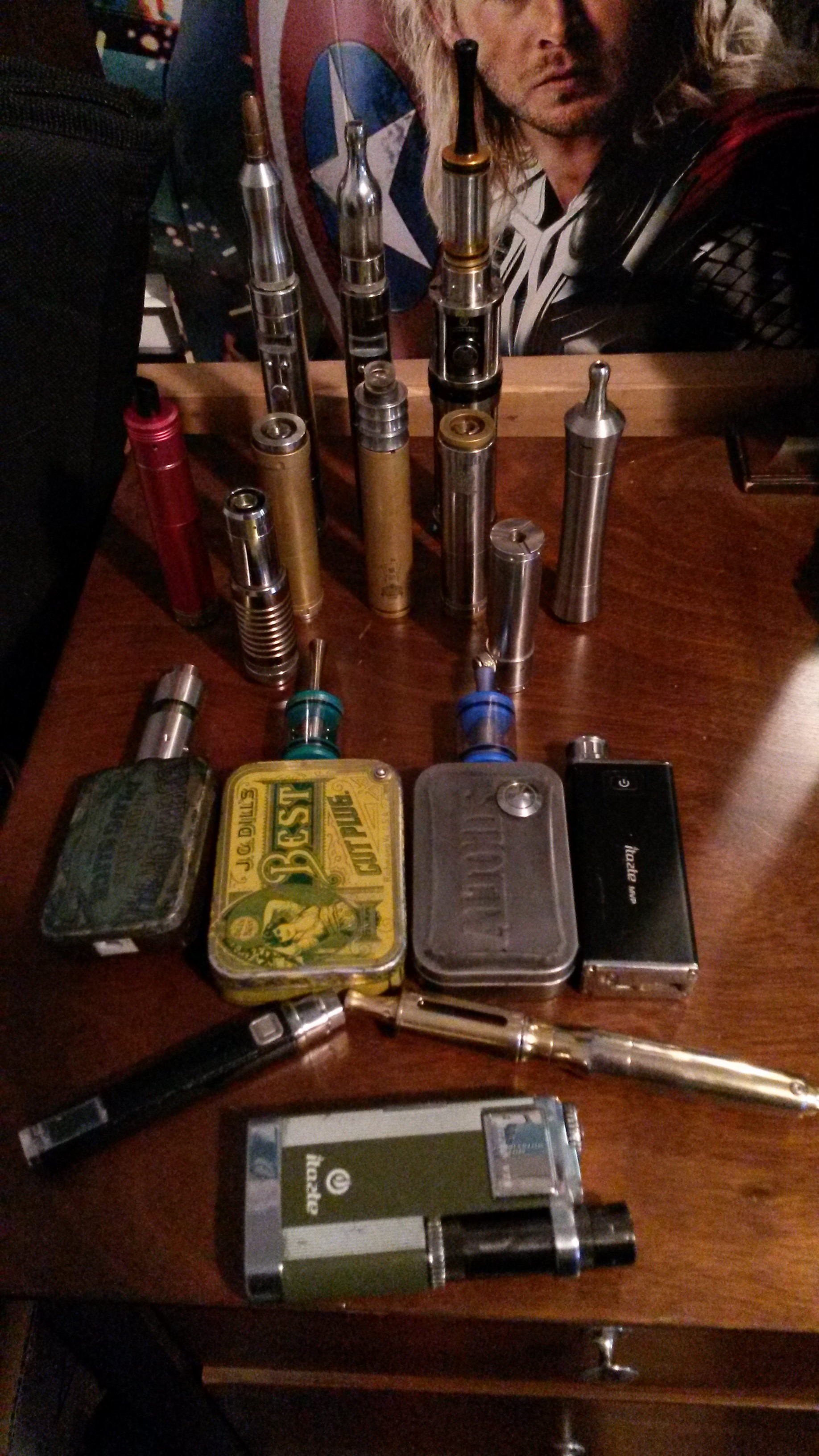 I usually keep 4 units ready to go with different flavors in them. Also, there are 2 of us using the same battery pool, and we both sub-ohm with mechanicals and RBA's which eat up battery life. Then, there is the slight addiction to equipment.... :roll:
