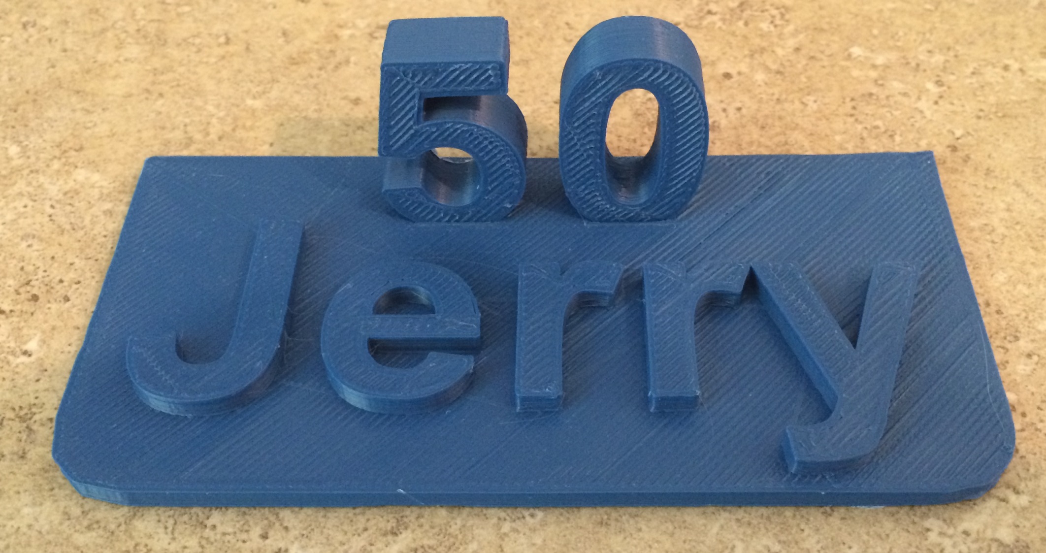 Doesn't say much, but I wanted to do something on the 3D printer for my brother-in-law's 50th birthday. Maybe a cake topper would be a better title.