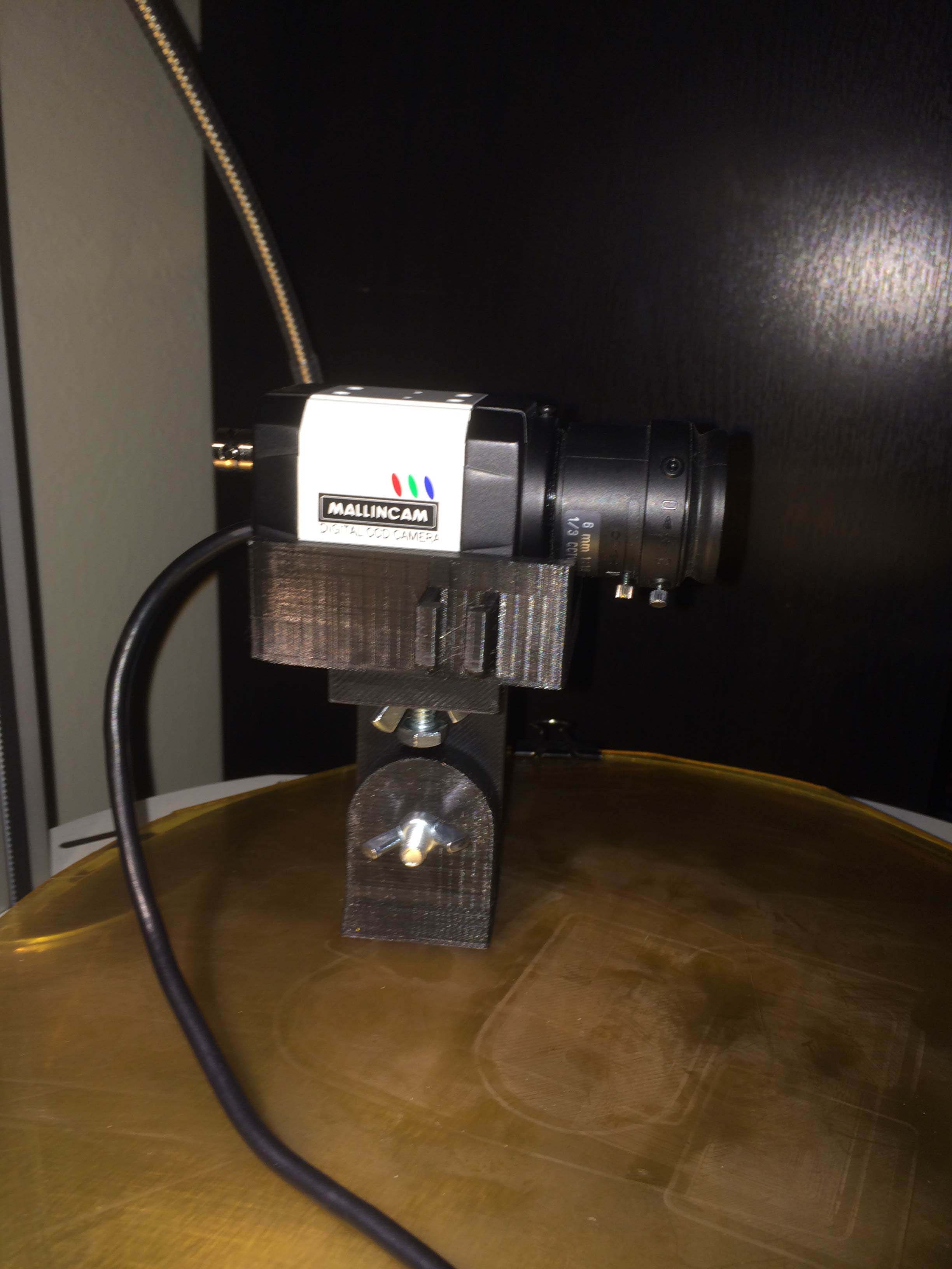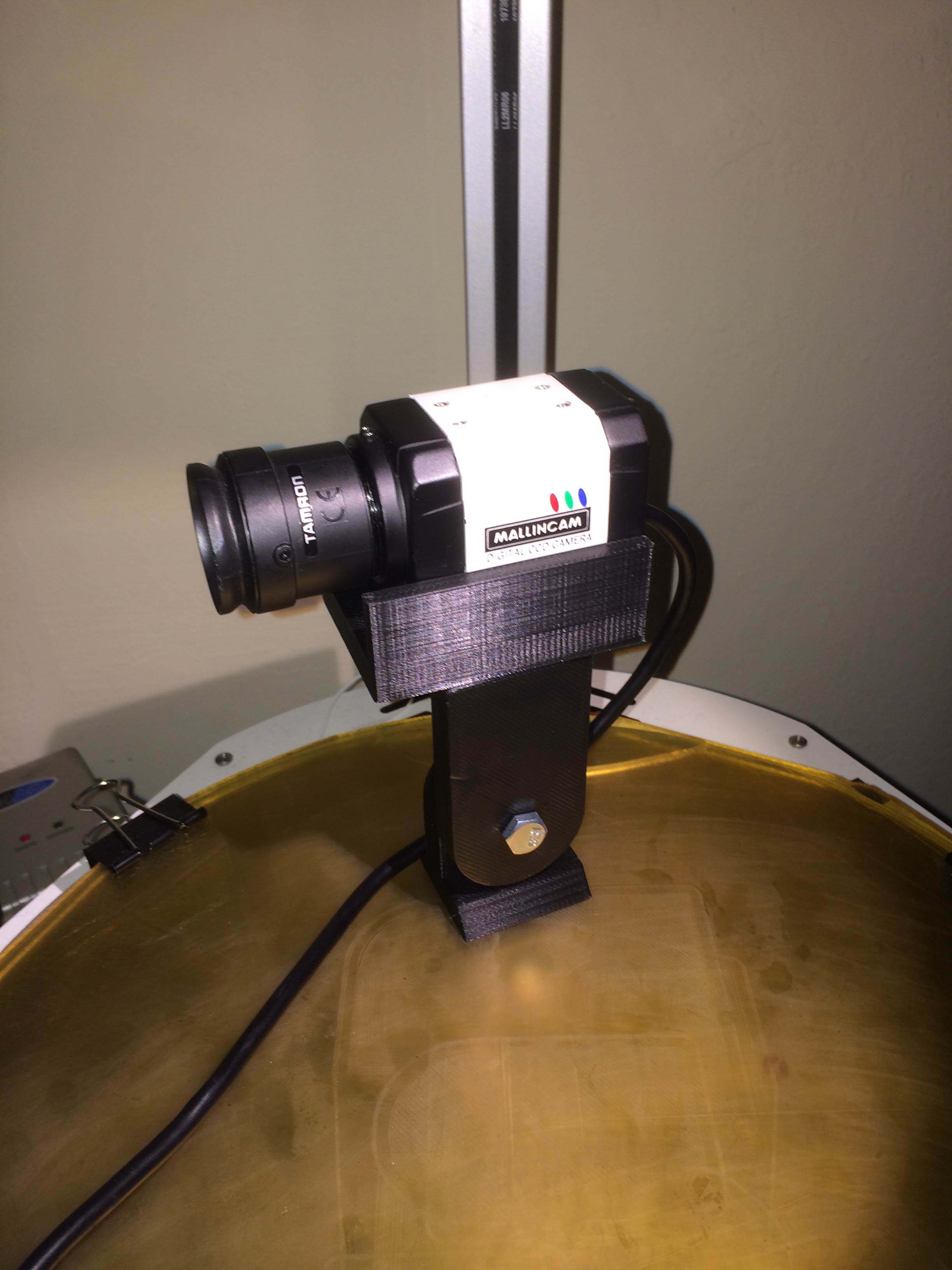 This is a finder mount for a Mallincam Micro-EX. I use it as a finder for my telescope that I am slowly converting to fully robotic operation. The idea is that I have a window open with the output of the video finder, with a crosshairs overlay, and I use it to point the main scope. The camera on the main scope then feeds the telescope image back to my computer.