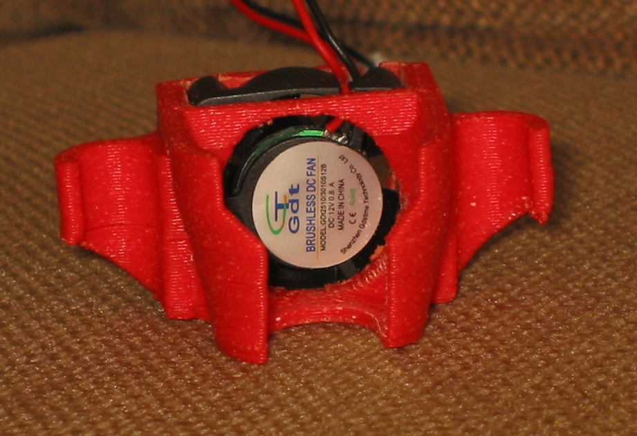 Edit: I don't have a huge amount of experience with different filaments, but have you printed your fan shroud in ABS, not PLA? Personally, my PLA has always come out slightly glossy so seeing your glossy red fan shroud it made me think to mention this.