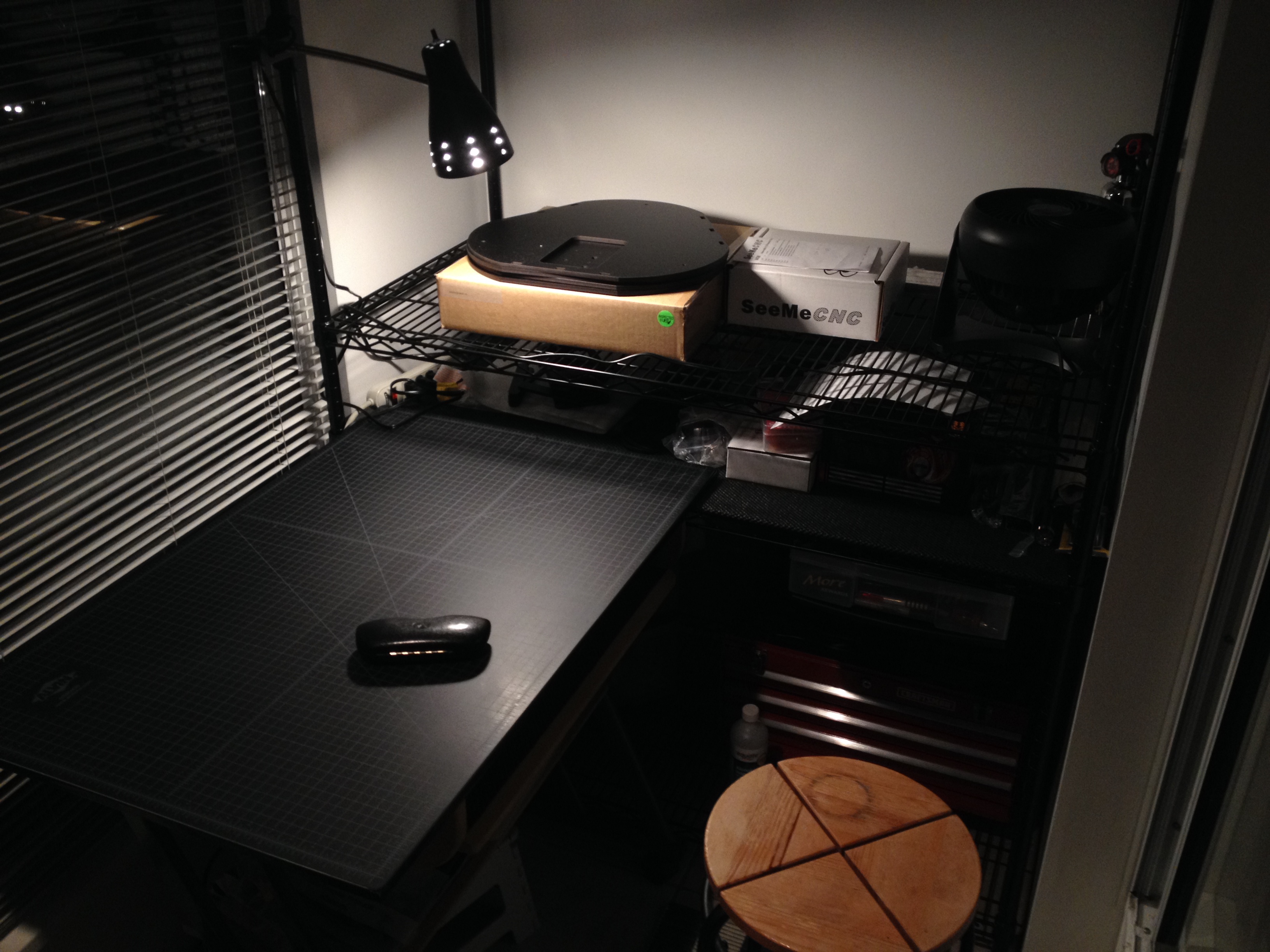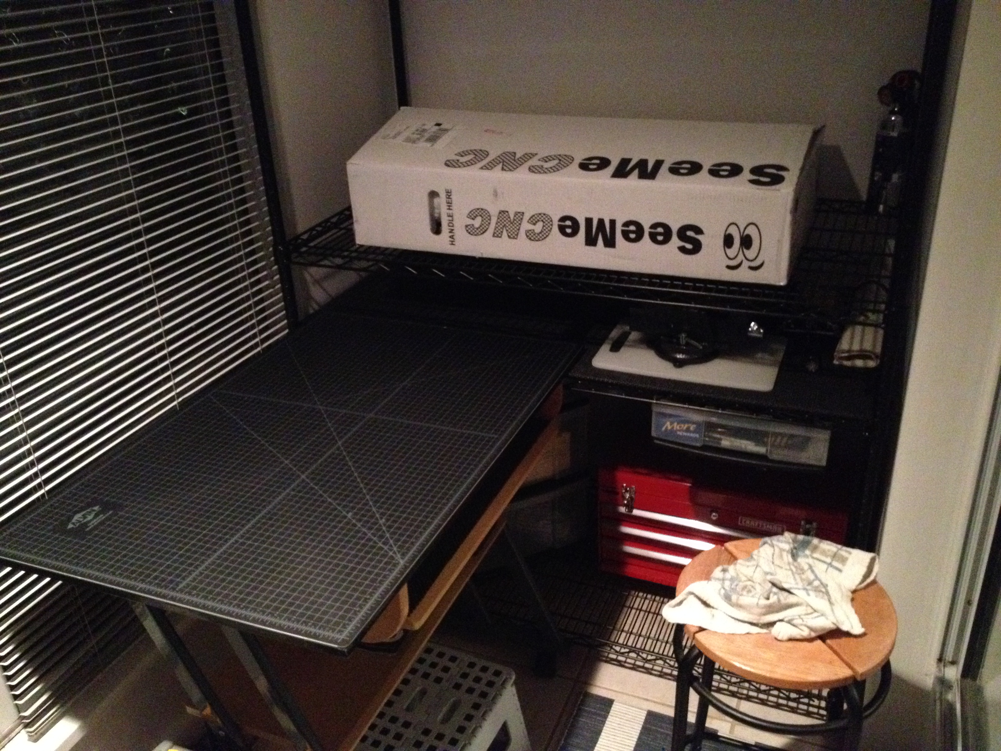 I have the hot end standing up in a vice with paper towel to protect the aluminum. I would never put a blade to that beautiful SeeMeCNC box! I will treasure it and use it to hold something cool. (I love small boxes/cases/bottles/containers that can be re-used.)