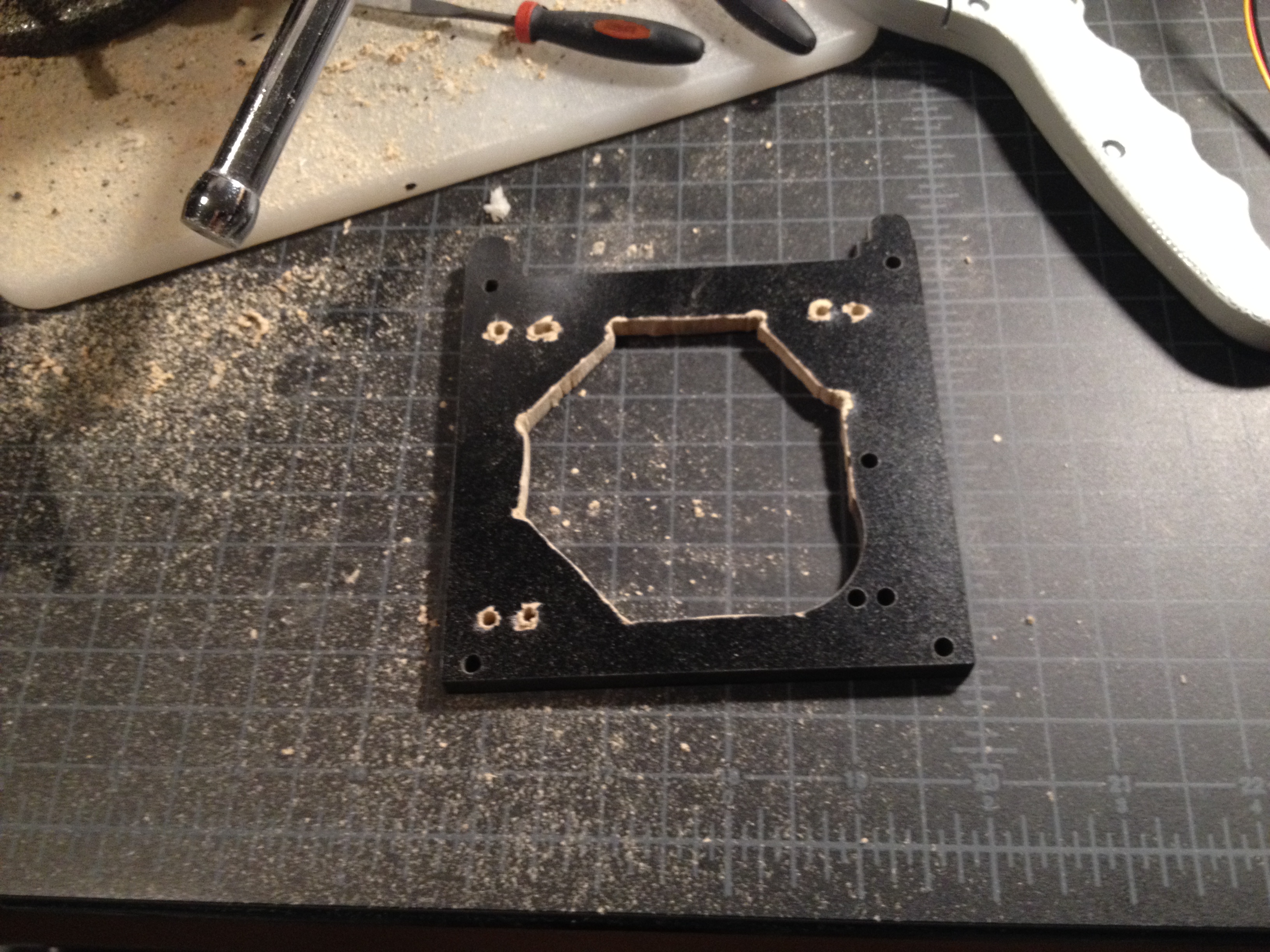 But just after taking the first two strokes of the file I remembered I had some M3 hardware in a little packet that came with my PC motherboard way back.