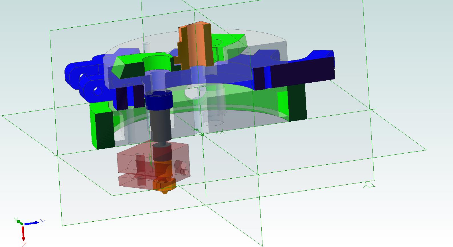 So what is probably most interesting is the autolift feature. This so far doesn't work properly. When cold I can move the hot end up and down with the extruder but my springs are too stiff and the lower point doesn't have a clear end (other than the spring bottoming out). I have plans for an updated version which I hope to resolve this. When I cut the spring to reduce its strength it would lower during printing but since it was around the extrusion force the position could vary with extrusion rate or time so obviously my spring is still too strong. I basically want a spring which is just strong enough to lift the weight of the hot end and resist any friction as well.